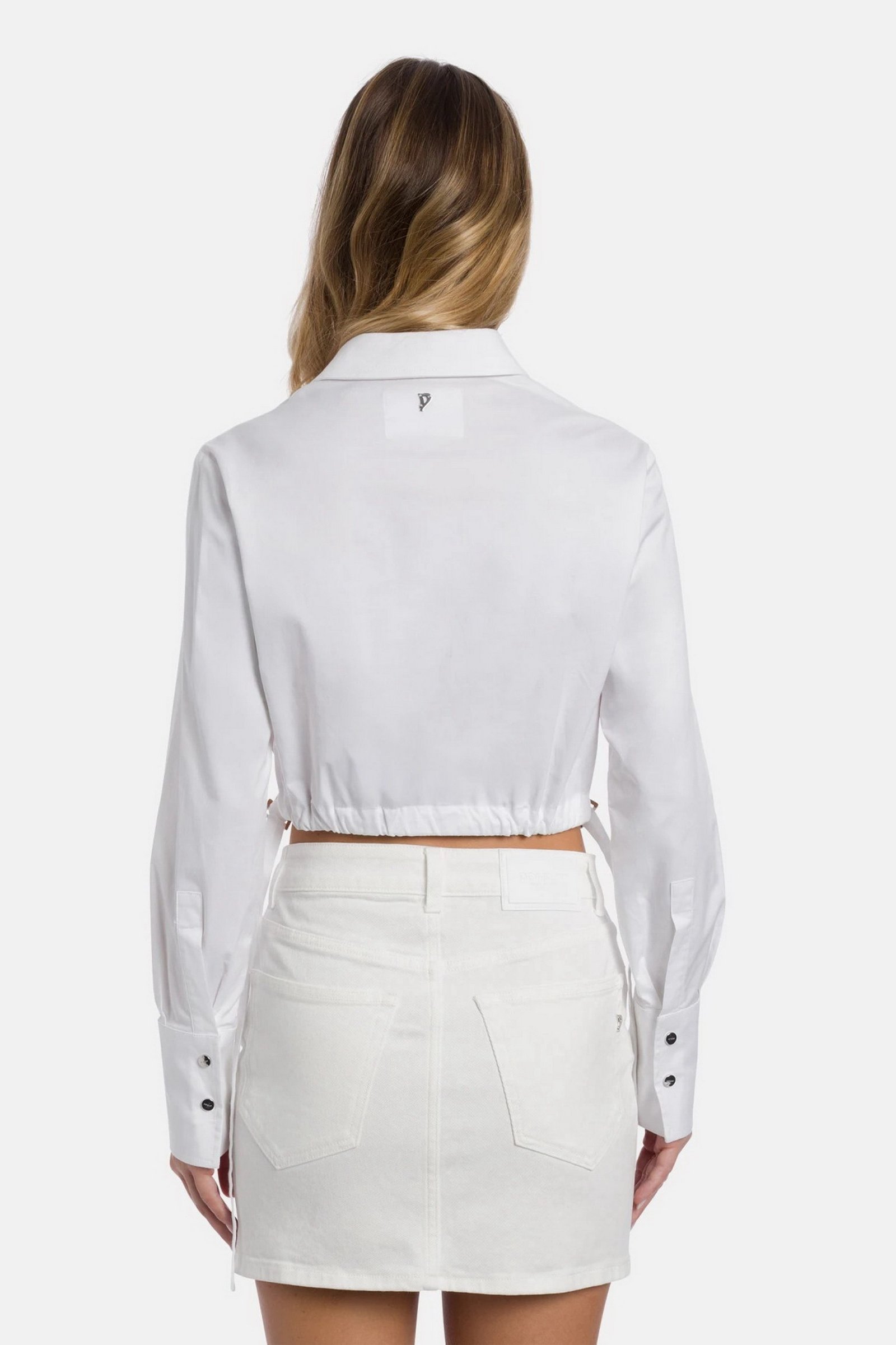 Bande doppie di tessuto al fondo e davanti. Variante colore Bianco