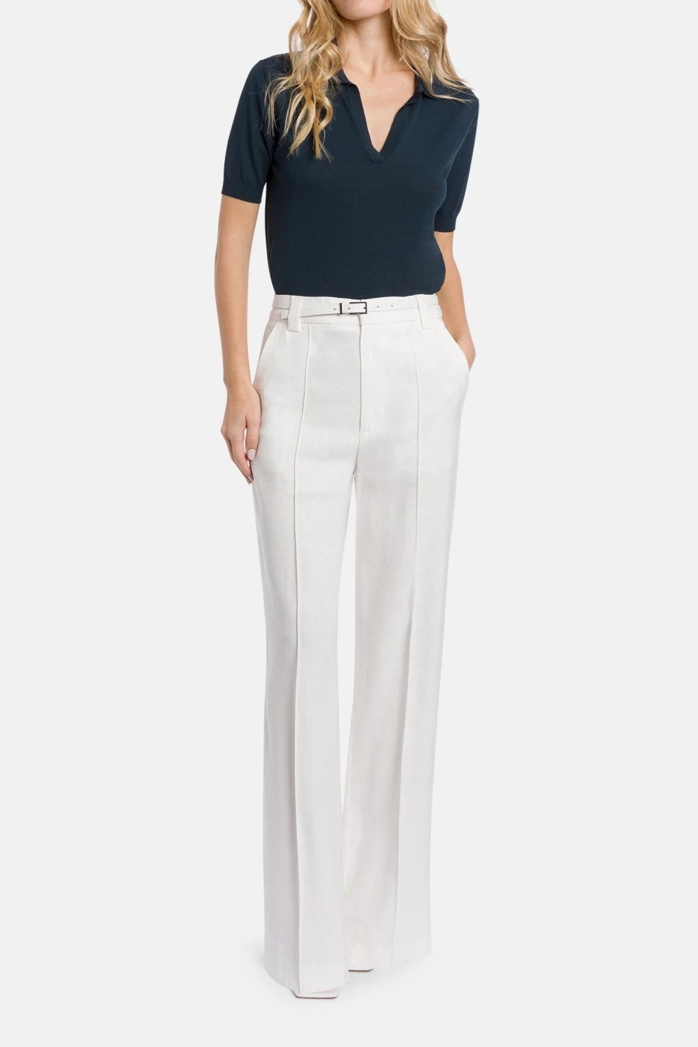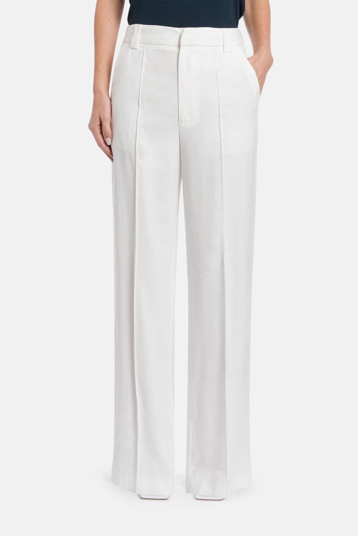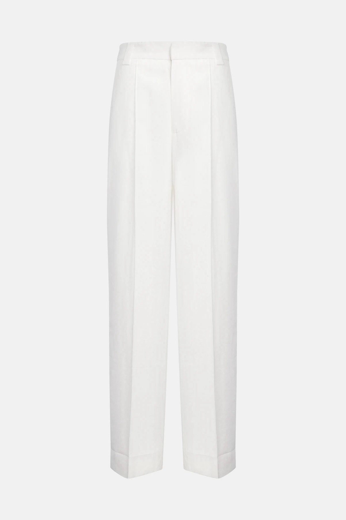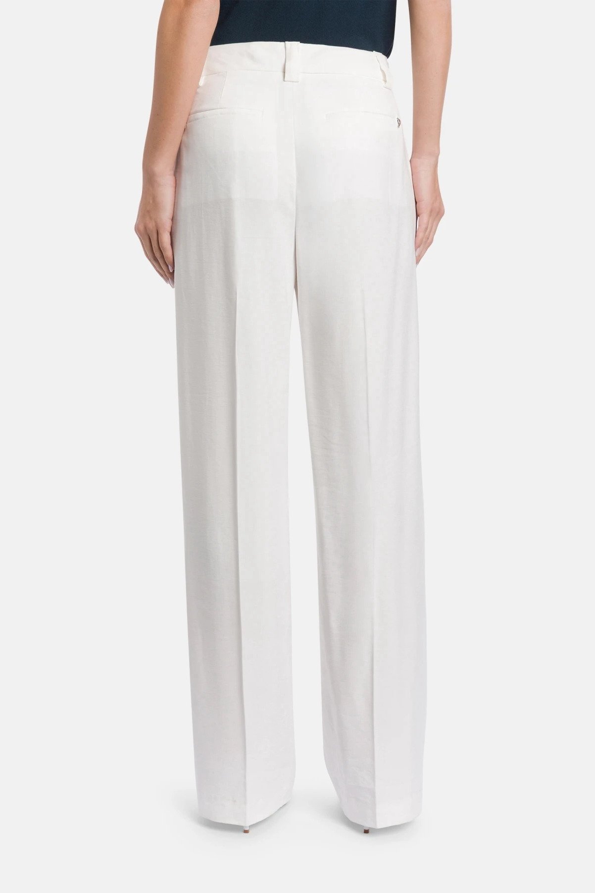 Pantaloni Abby wide leg chino, vita regolare, tasche a filetto posteriori. Gabardina di viscosa. Logo Dondup. Made in Italy