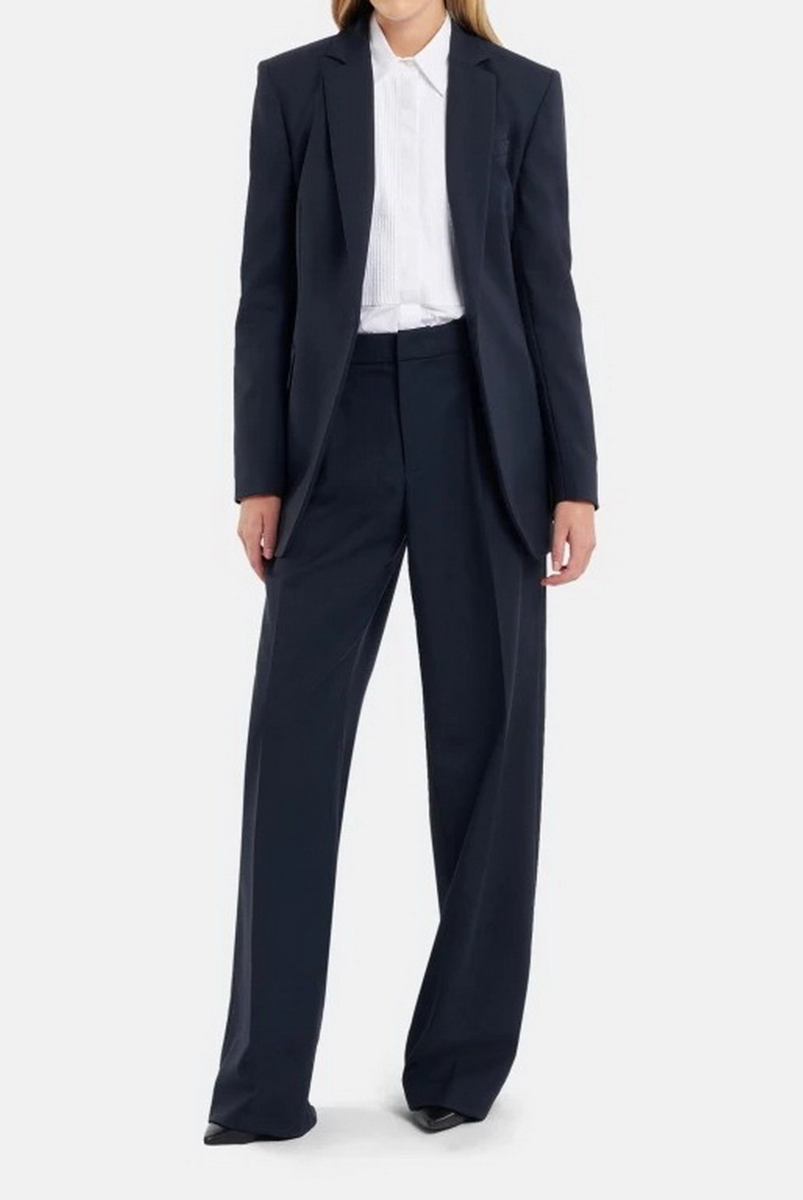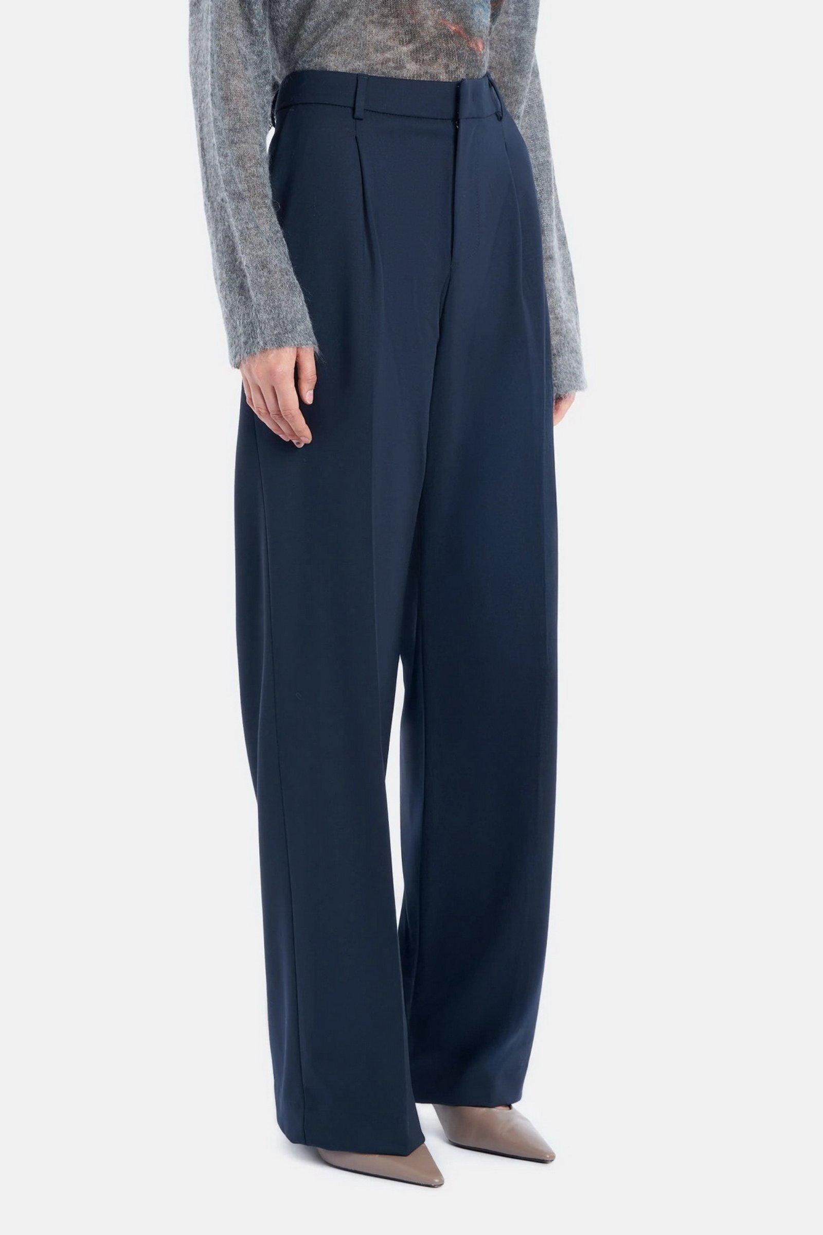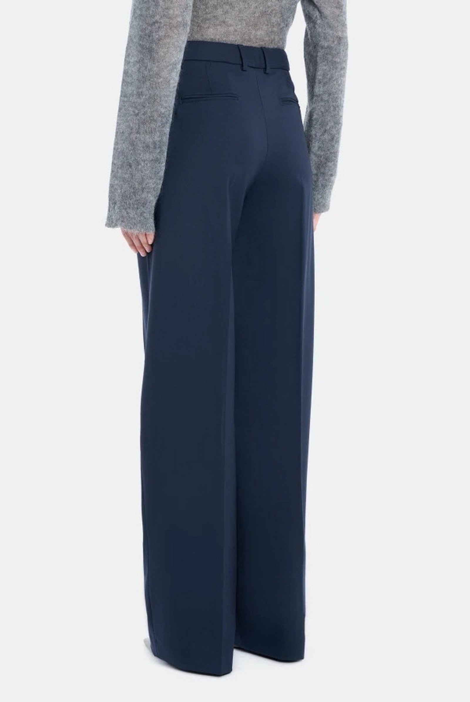Pantaloni Lia wide leg chino con pinces davanti, vita regolare e tasche a doppio filetto posteriori. Gabardina di lana stretch. Logo Dondup.