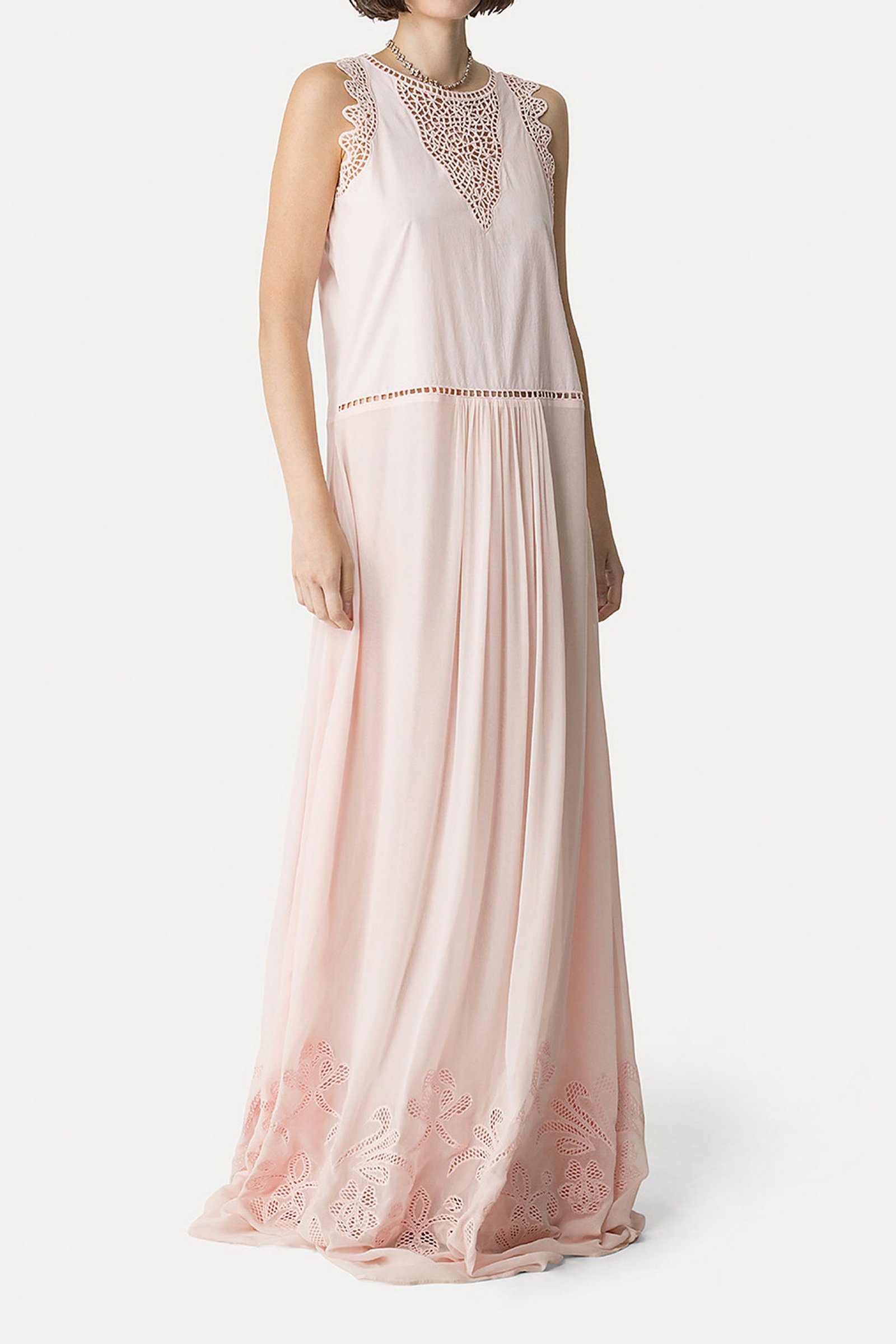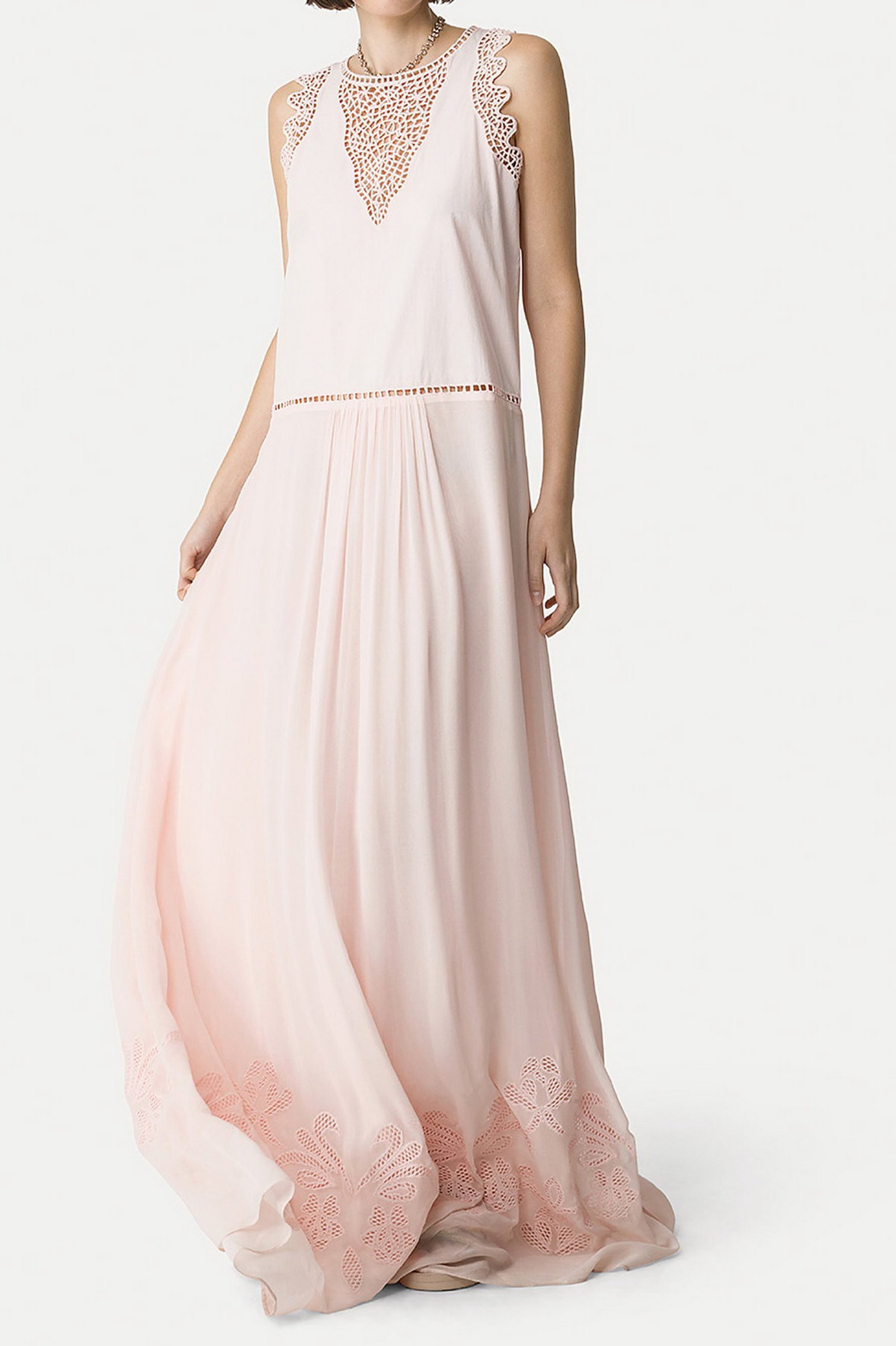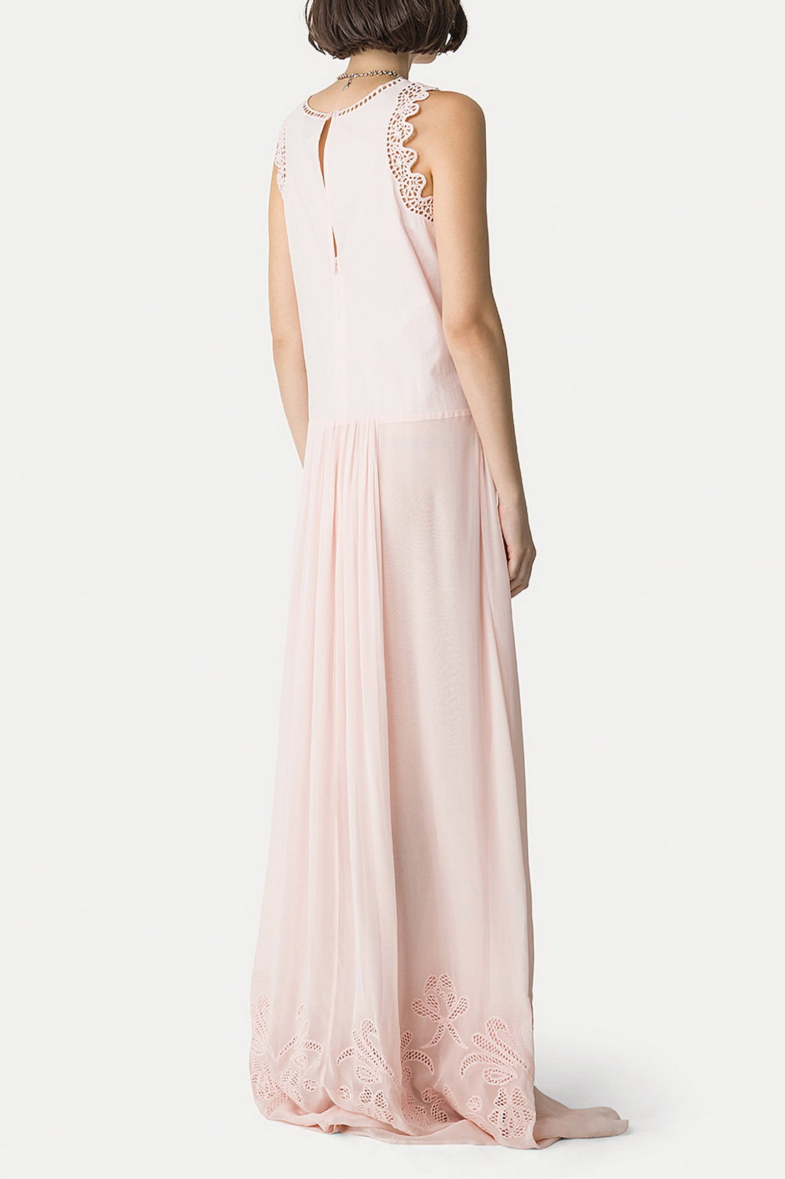 prezioso ed elegante, l’abito in popeline e georgette è l’interpretazione perfetta dell’estetica forte_forte: leggerezza di volumi, intarsi preziosi e fatti a mano, ricami à jour con conchiglie e dettagli della natura. la gonna in georgette scende fluida lungo il corpo, creando movimento e sensualità per un abito elegante da indossare nelle occasioni speciali.