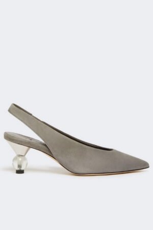interpretazione glamour del sabot in cavallino con stampa. la fantasia bicolore crea un equilibrio delicato tra macula e pois, in un mix di linee semplici.