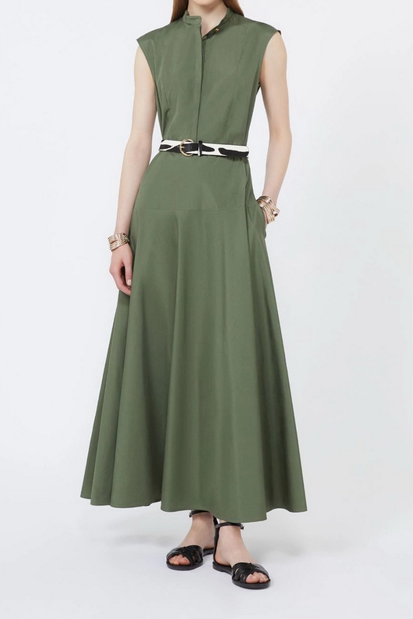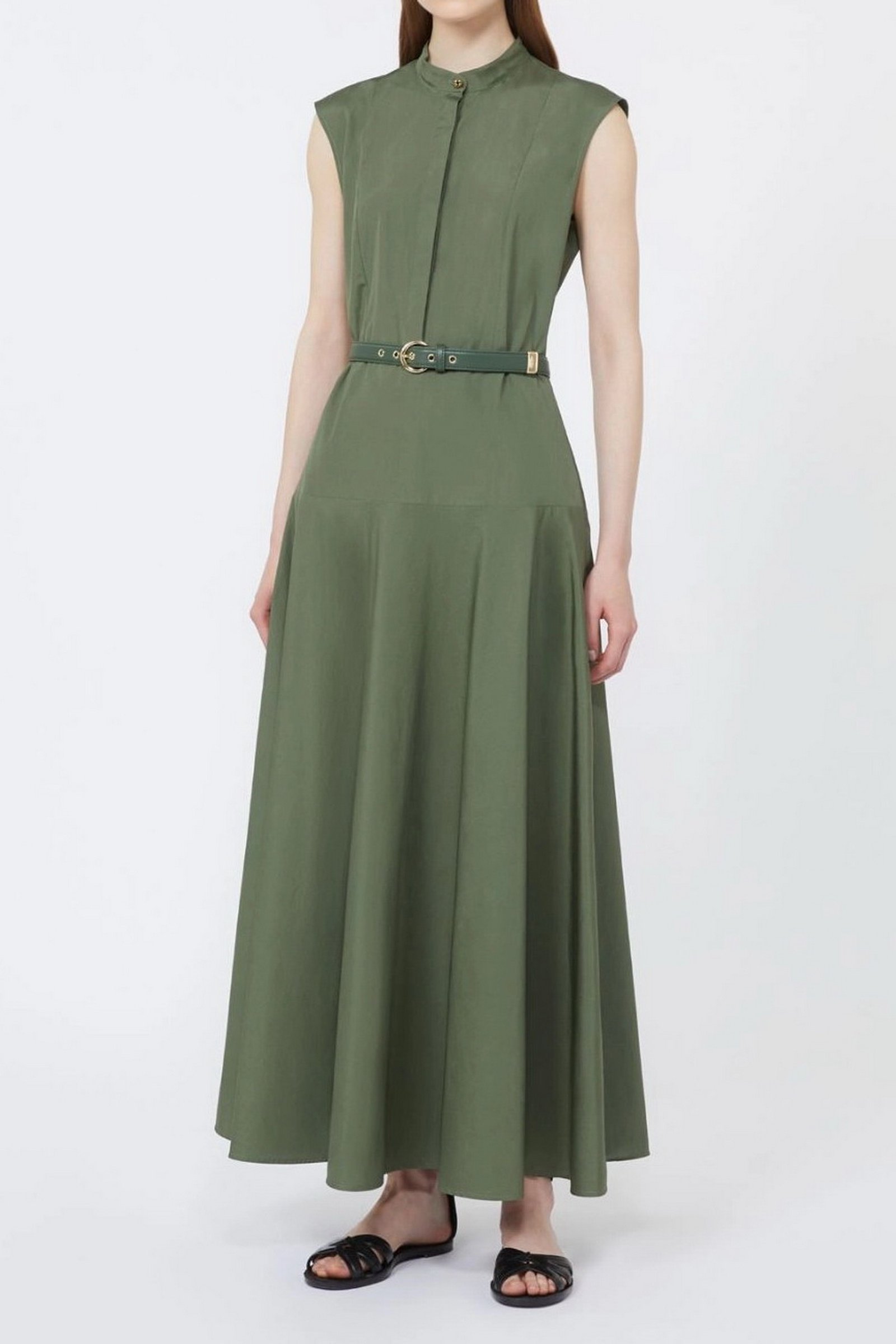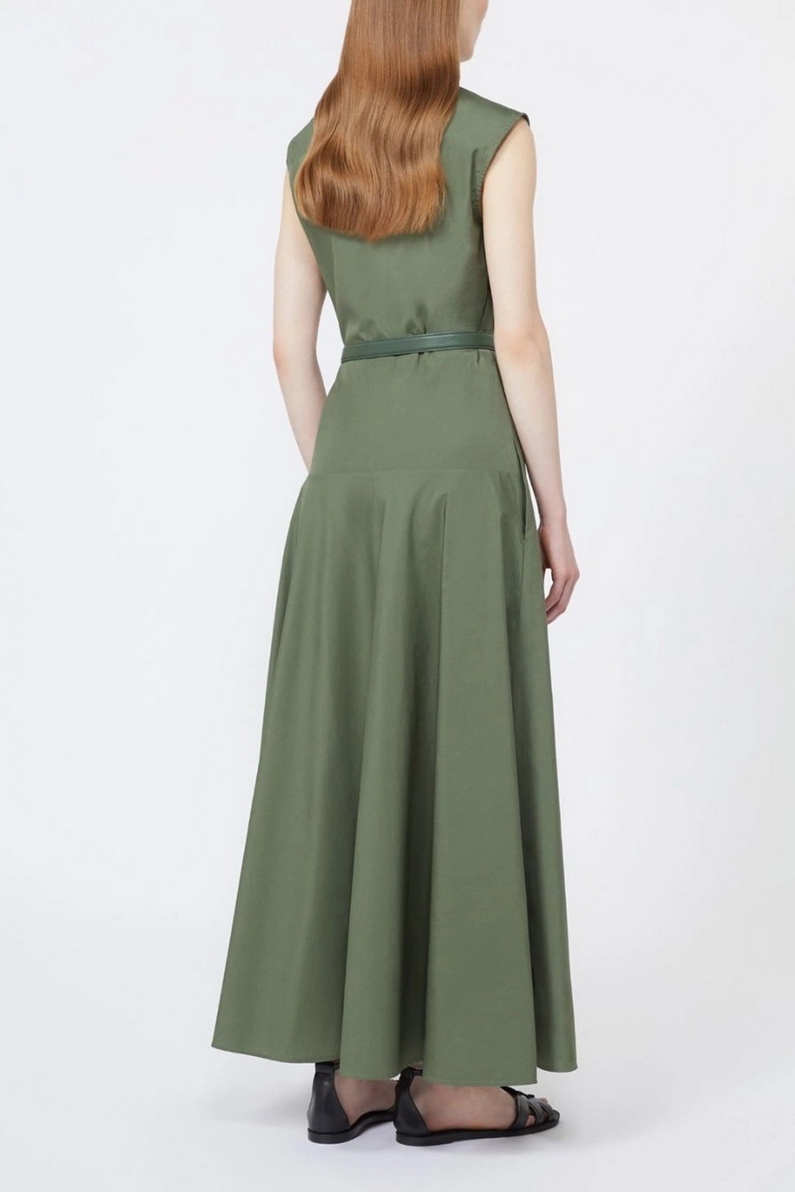 MAX MARA STUDIO Abito a ruota in popeline di cotone – Verde kaki