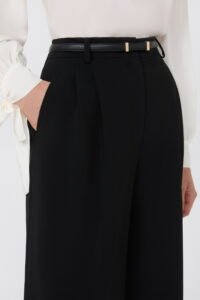 - Chiusura con listino alto in vita, zip con patta e gancetto