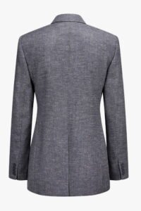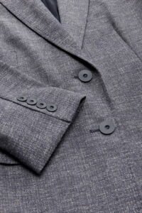 Tessuto 67% lana vergine, 25% viscosa, 8% lino; fodera 70% acetato, 30% poliestere.