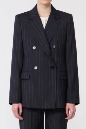 MAX MARA STUDIO Blazer doppiopetto in lana gessata – Blu