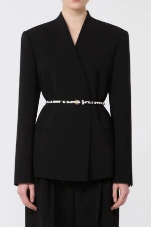 MAX MARA STUDIO Giacca doppiopetto in cady con cintura – Nero