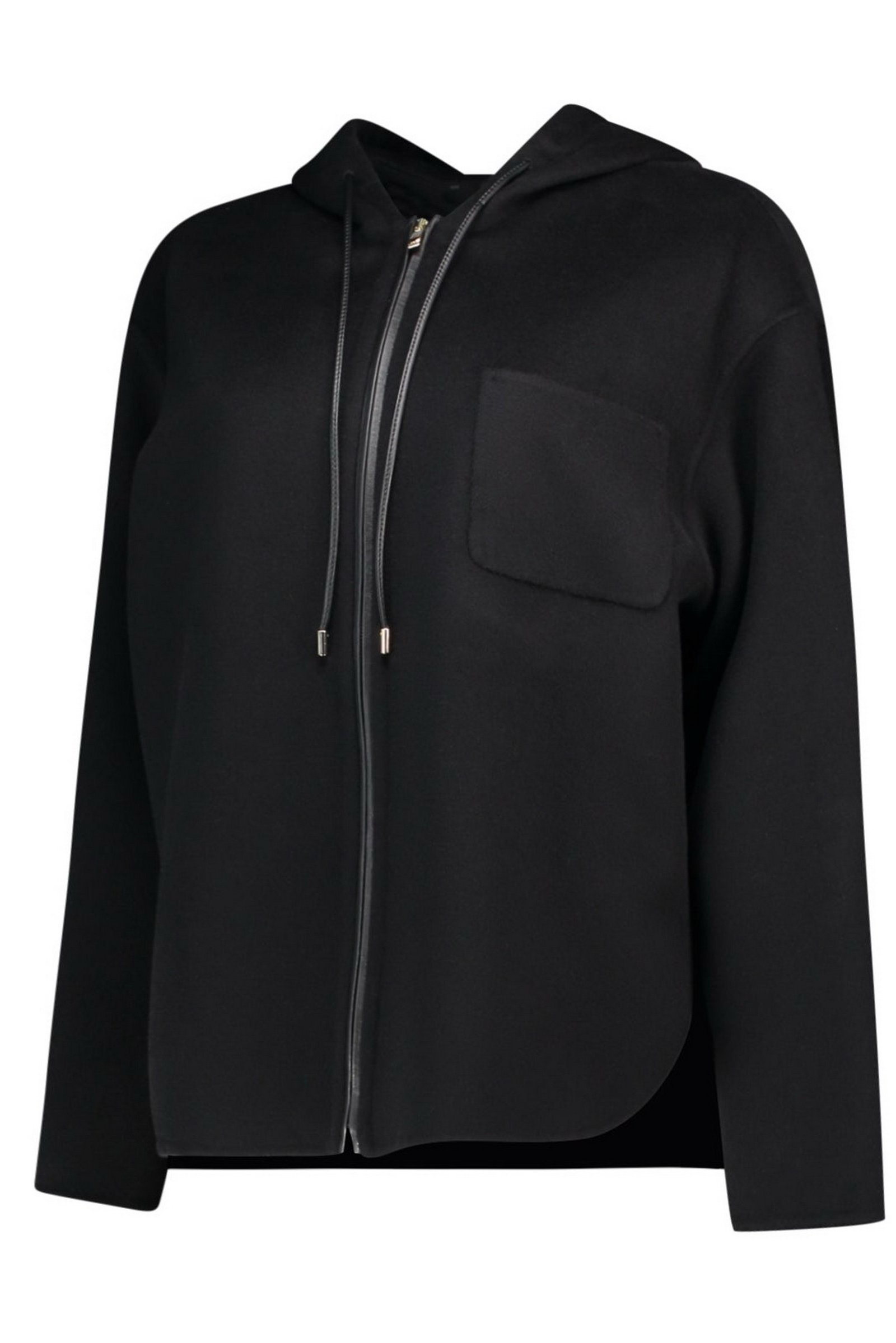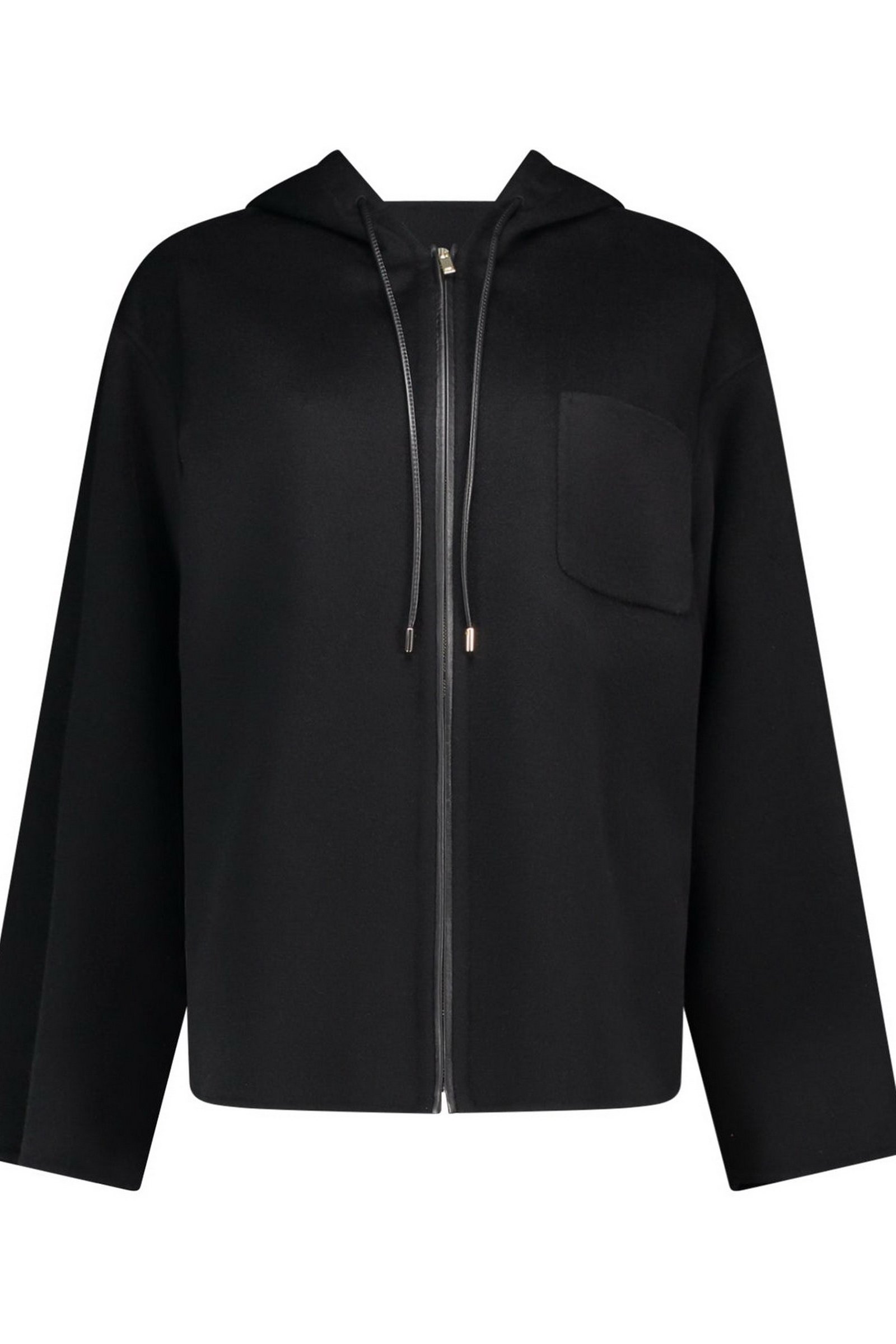 Caban corta dalla linea dritta con cappuccio a coulisse.