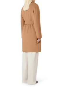 Cappotto midi a vestaglia realizzato in prezioso beaver di lana, con dettagli classici e una costruzione sartoriale che accompagna le linee femminili.