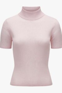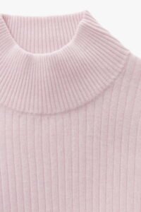 Maglia dolcevita con lavorazione a costa piatta che esalta la silhouette.