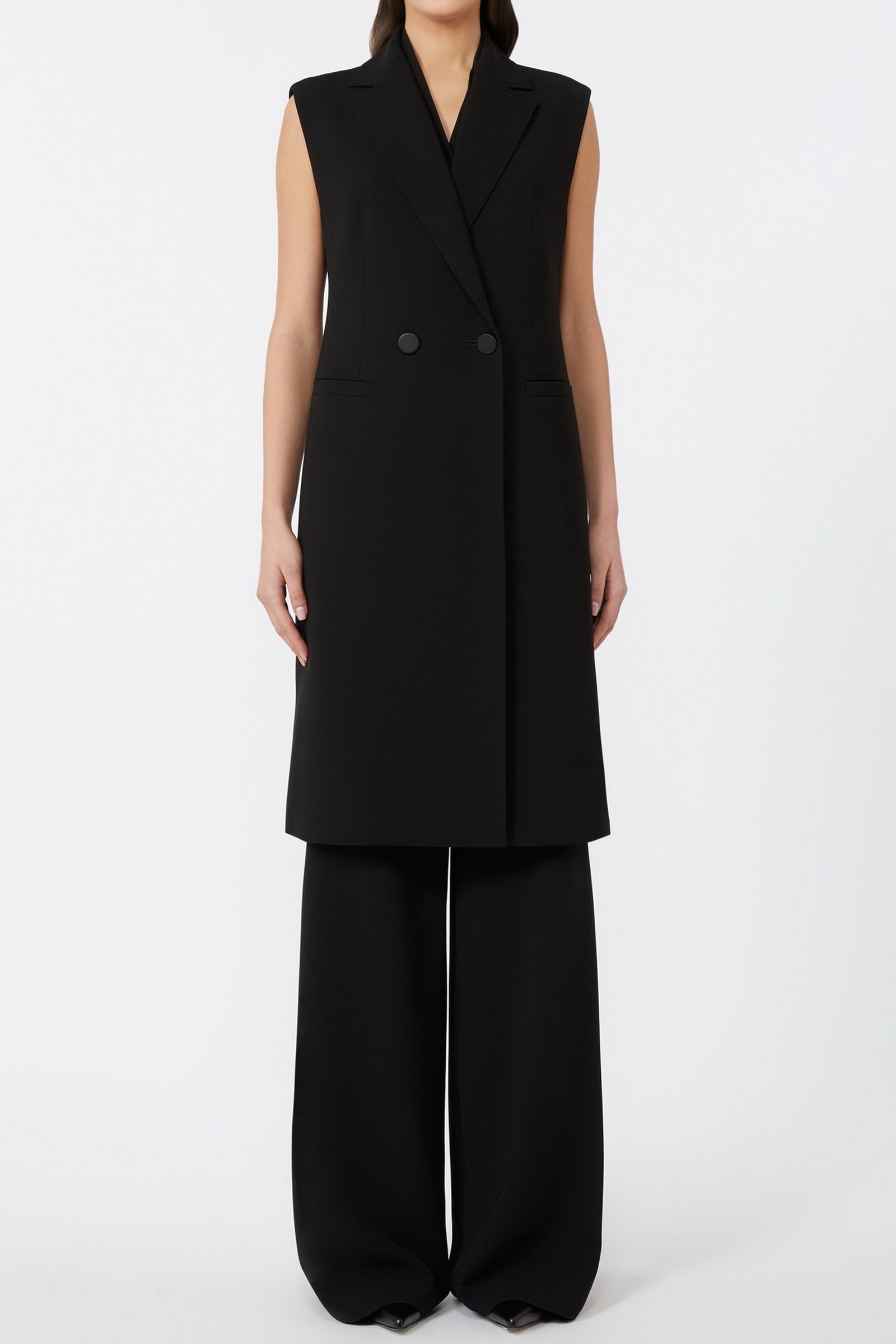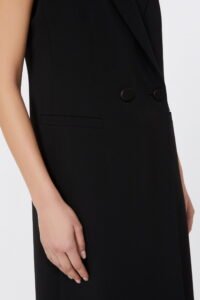 Giacca lunga smanicata, caratterizzata da una costruzione sartoriale doppiopetto.