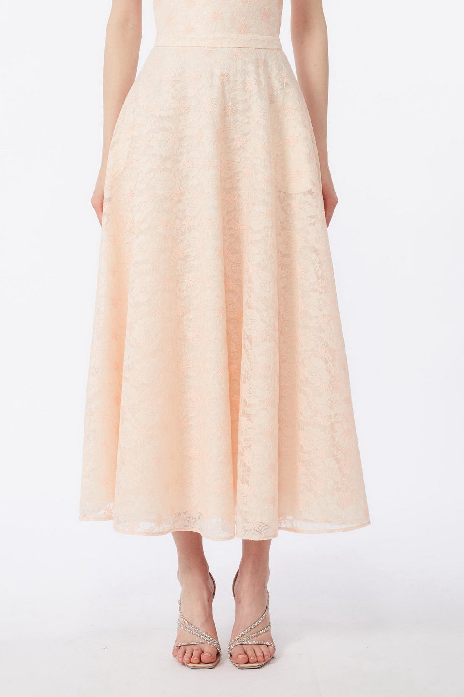 MAX MARA STUDIO Gonna midi in pizzo e organza – Cipria
