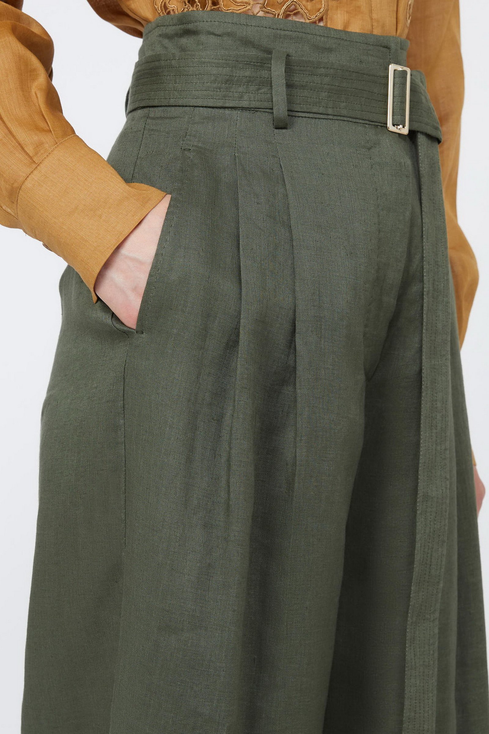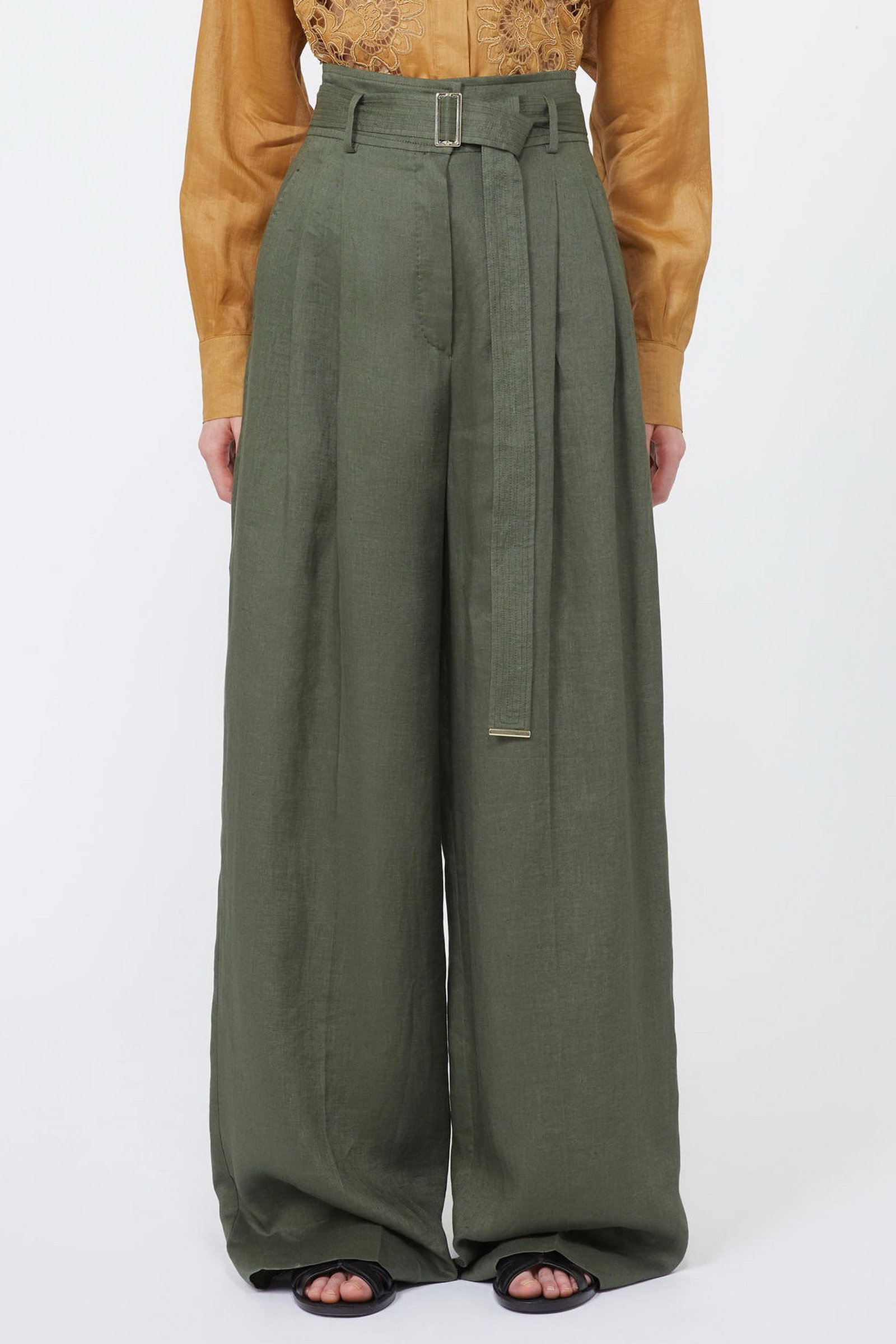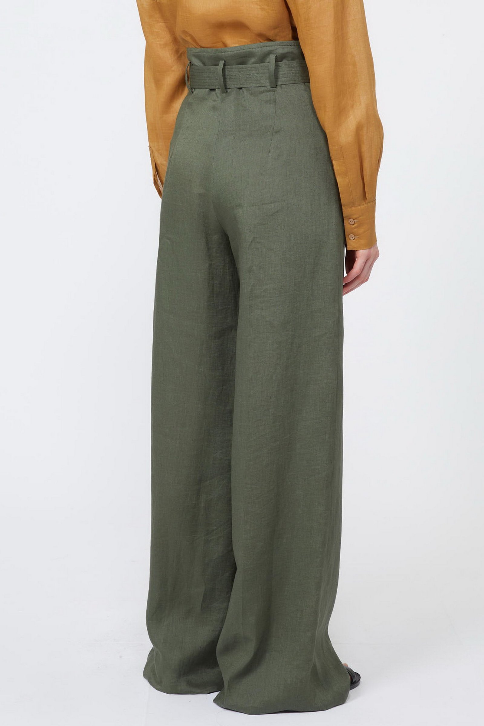 MAX MARA STUDIO Pantalone in tela di lino – Verde Militare