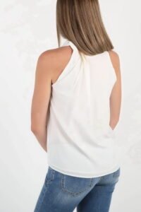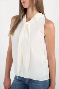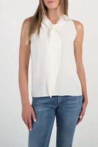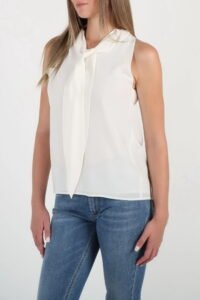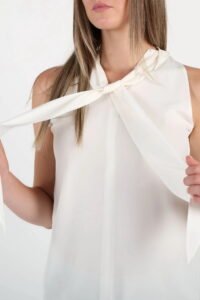 Top smanicato con fusciacca da annodare a fiocco sul collo .- Top in crêpe de Chine di pura seta