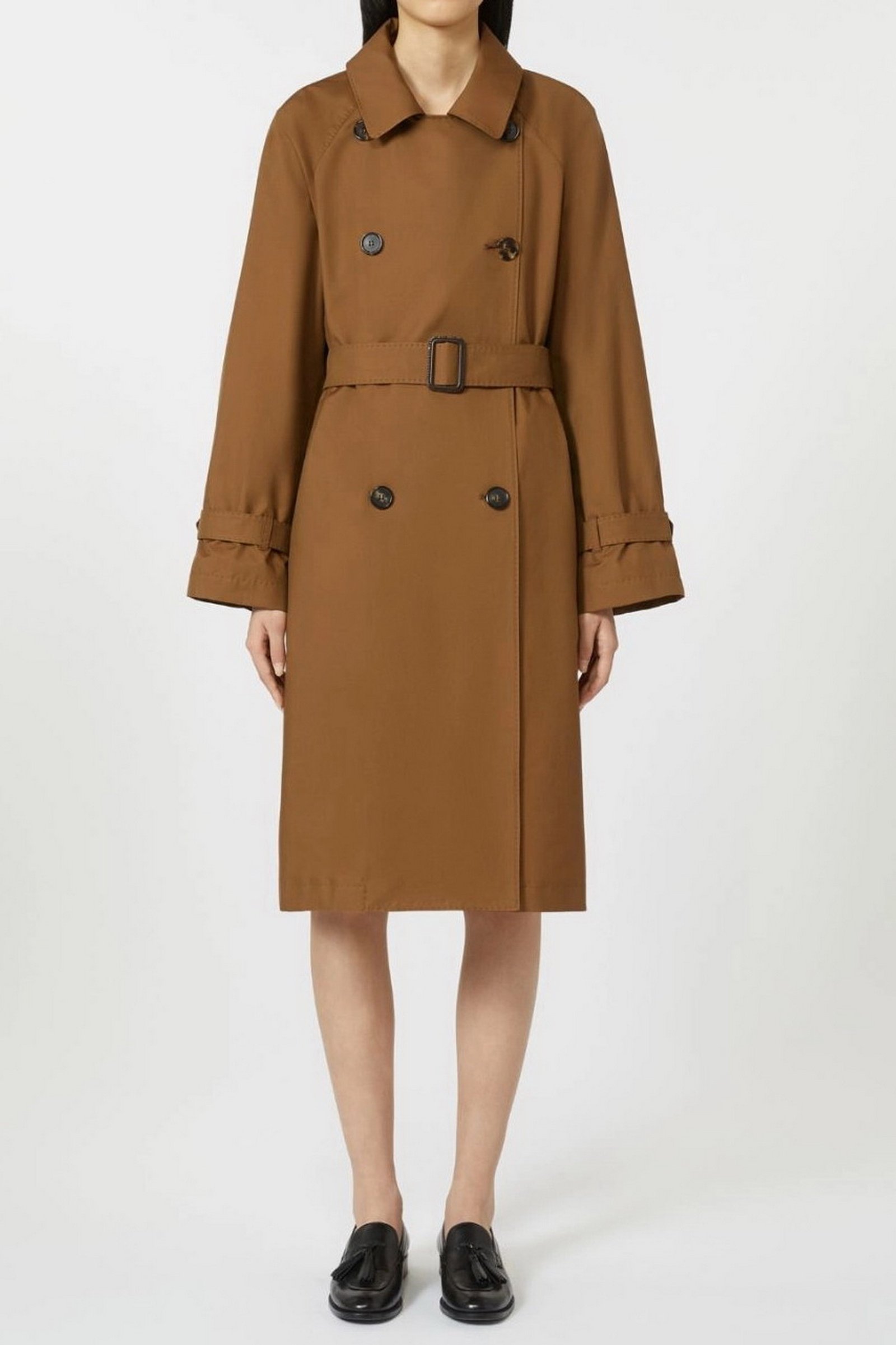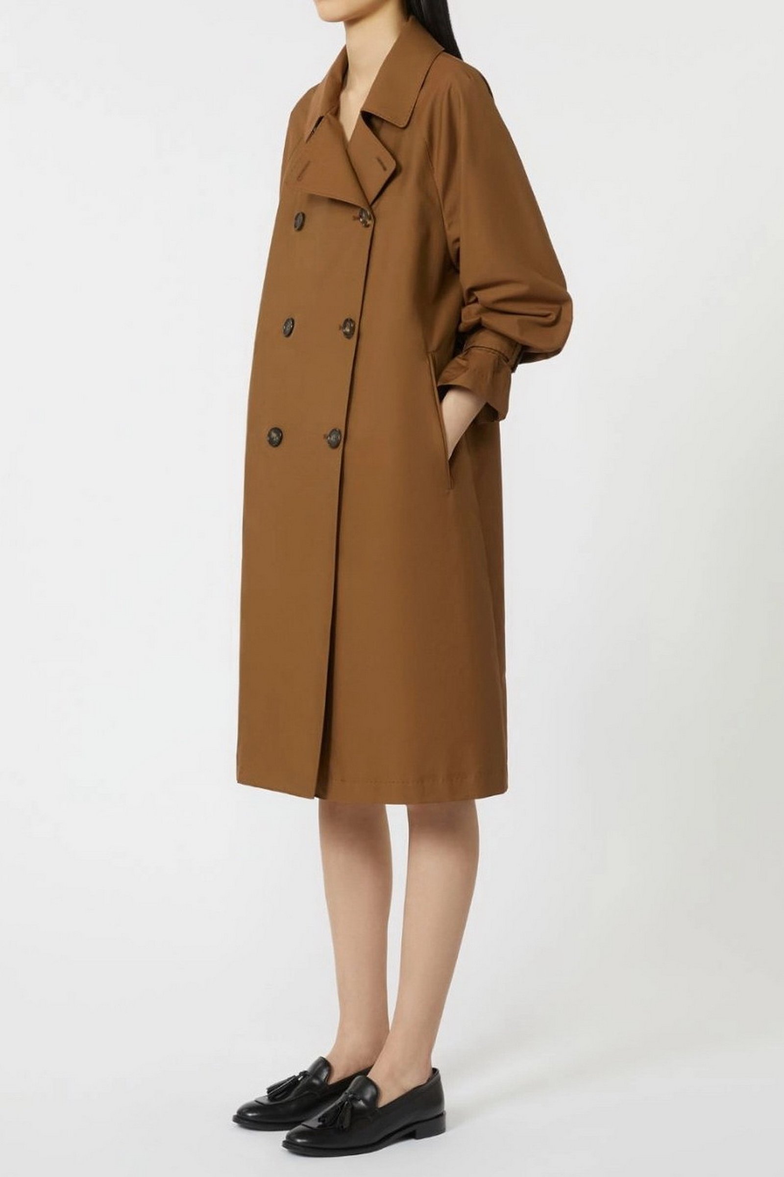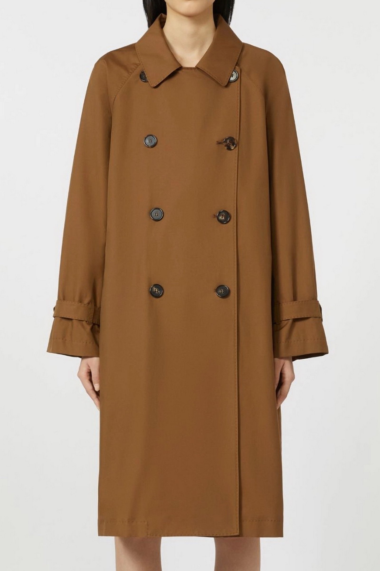 MAX MARA THE CUBE Trench doppiopetto in twill antigoccia – CUOIO