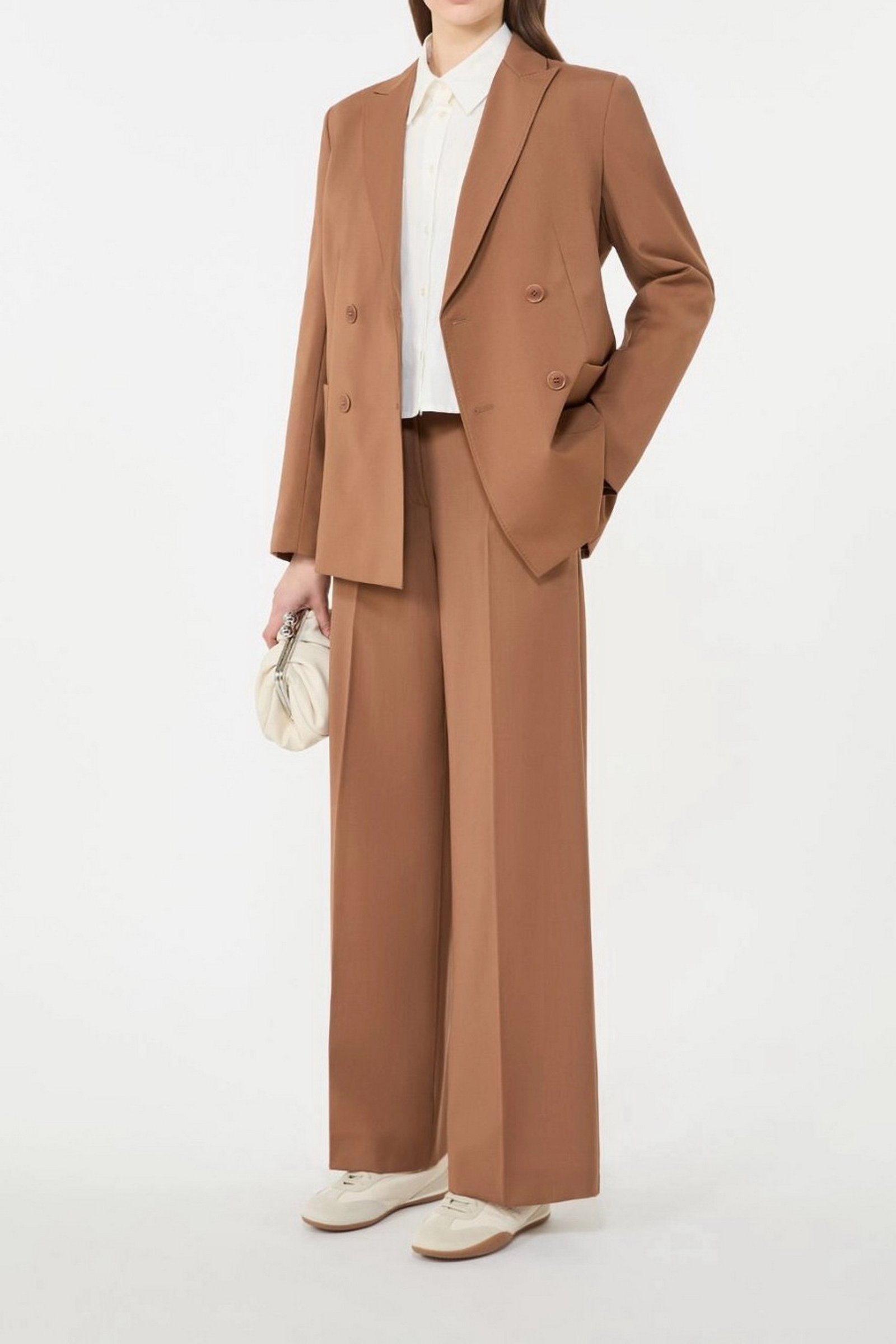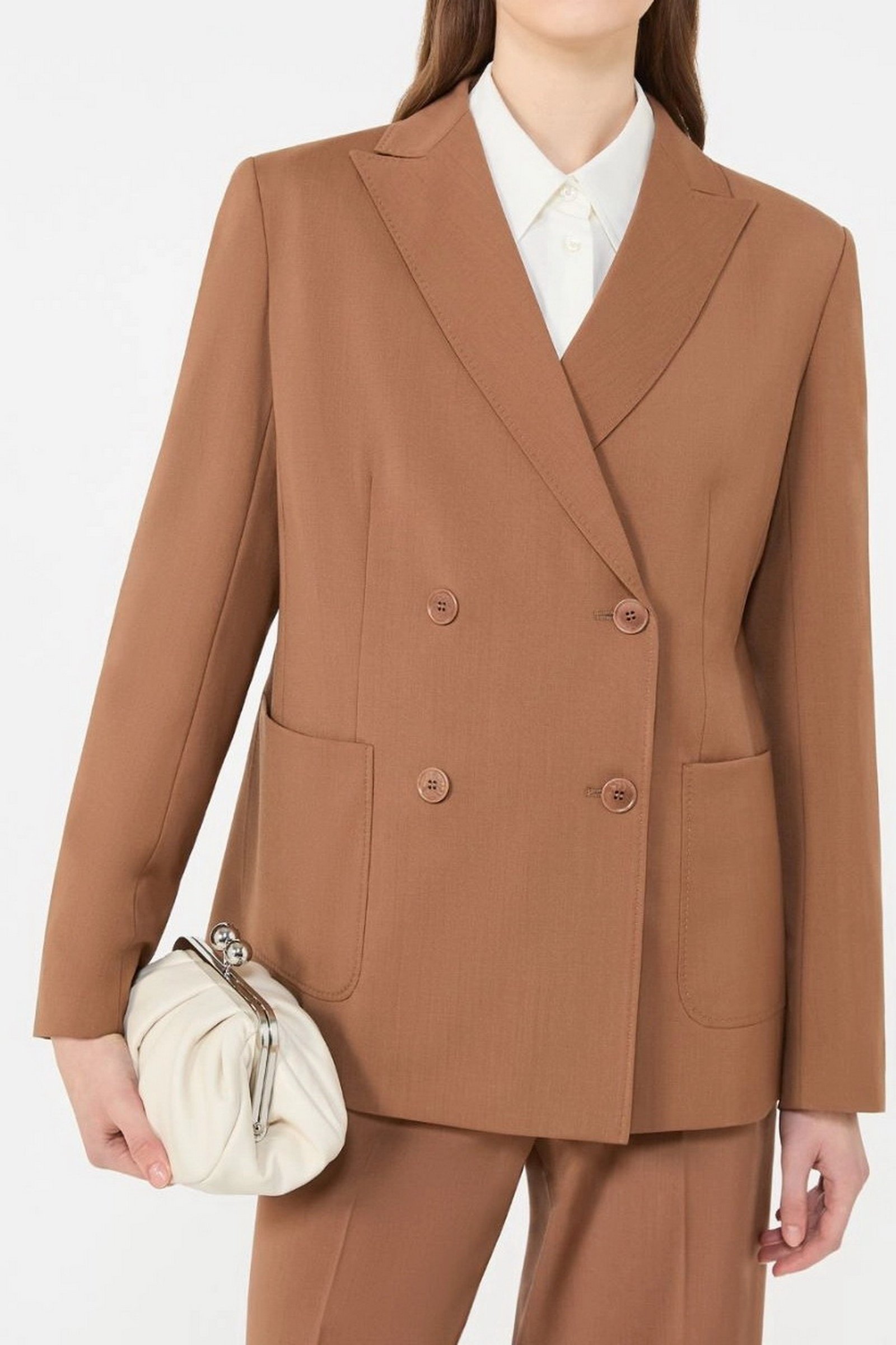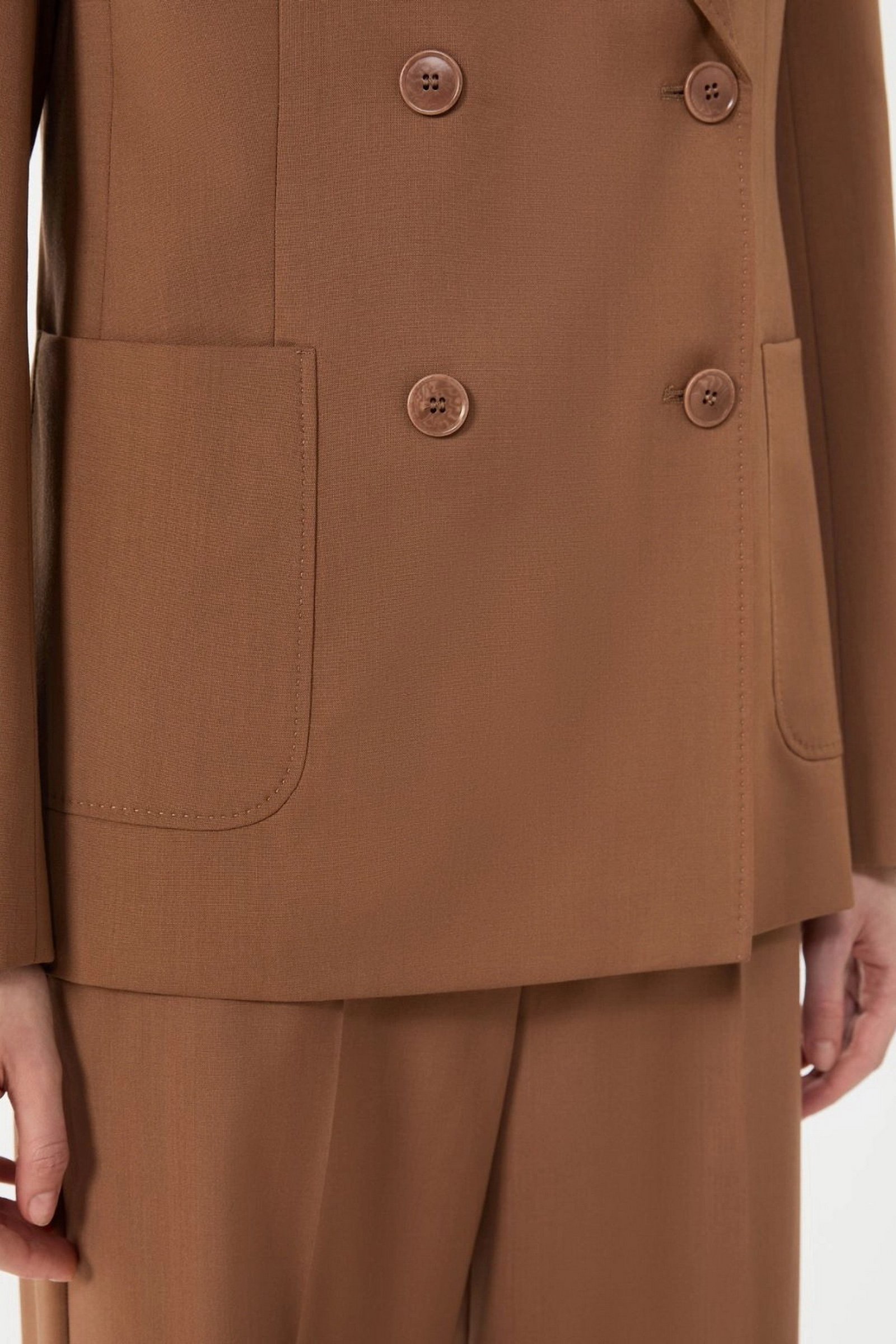 MAX MARA WEEKEND Blazer doppiopetto in lana stretch – Cuoio
