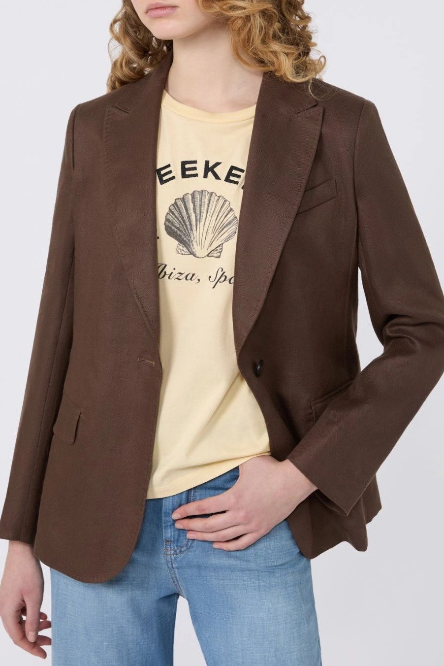 MAX MARA WEEKEND Blazer in canvas di lino – Cioccolato