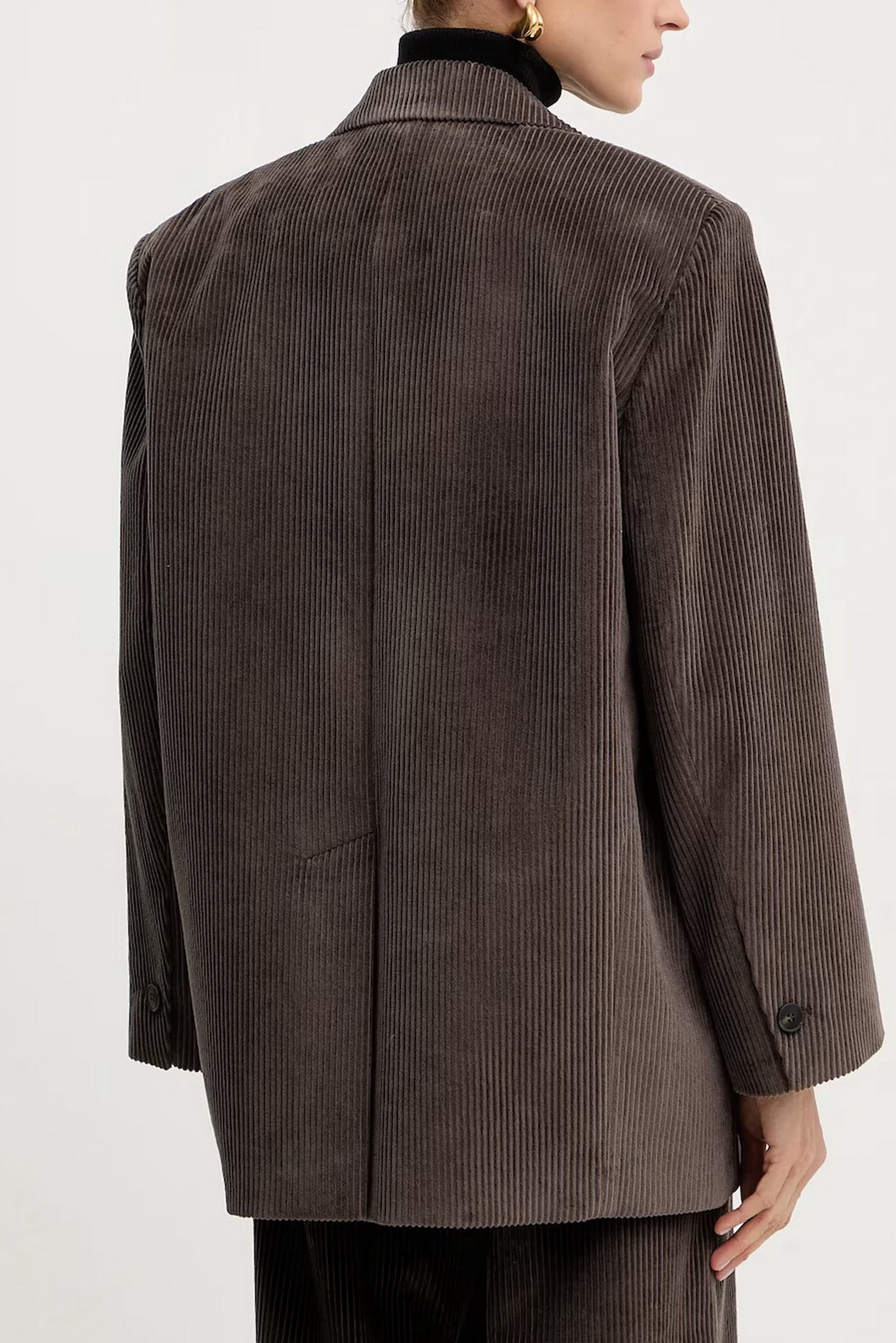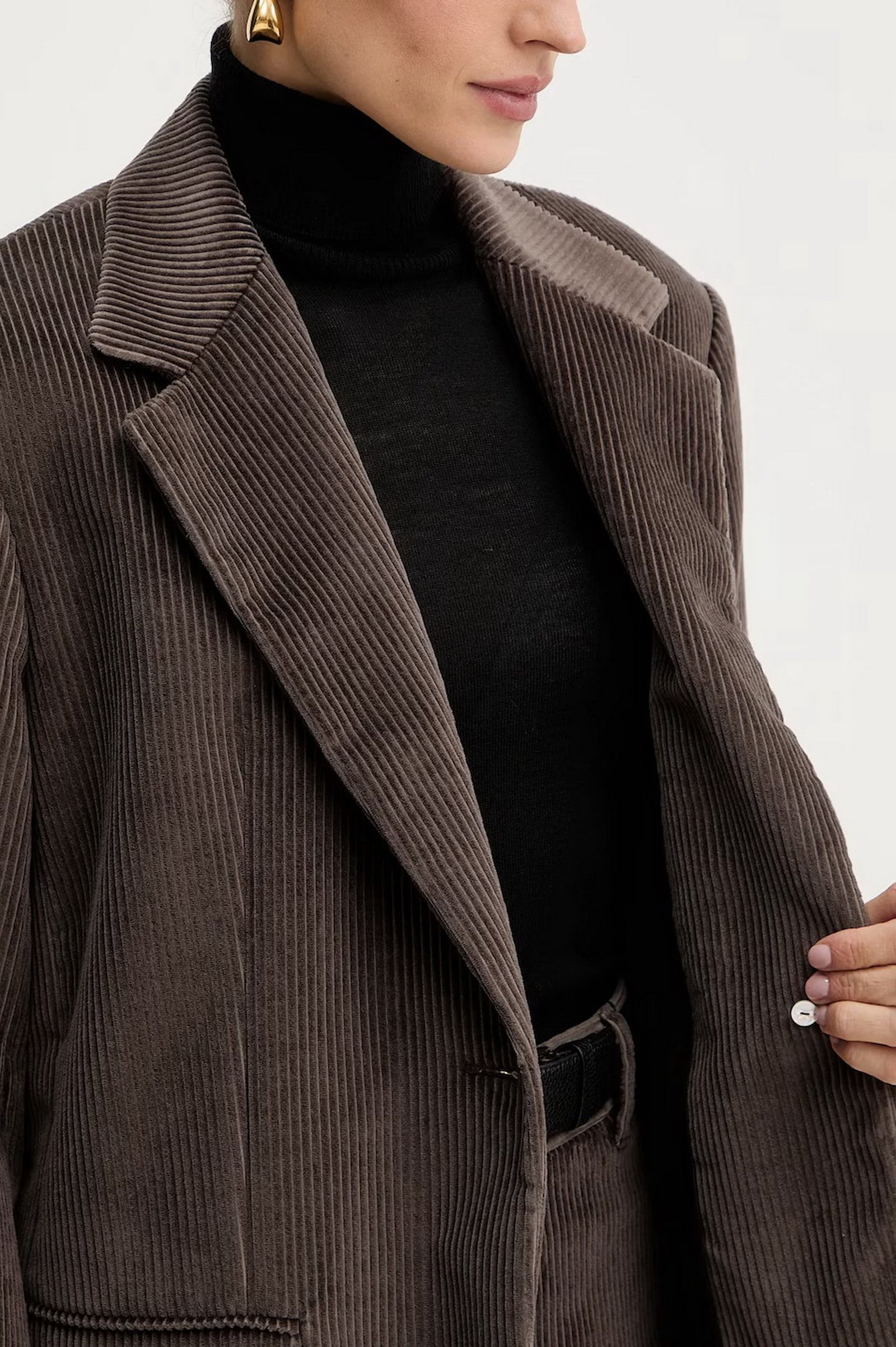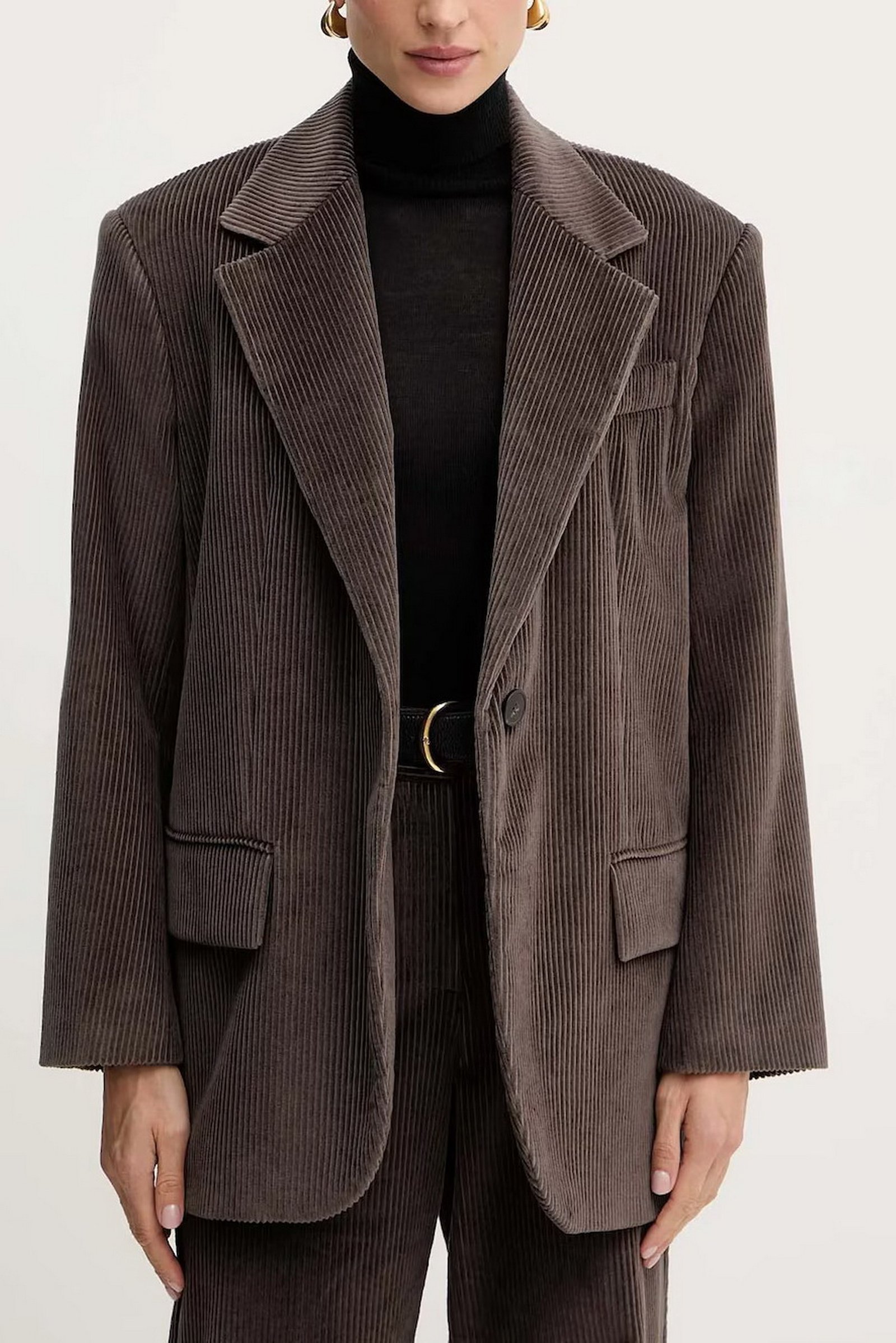 Blazer monopetto d’ispirazione maschile, dal caratteristico volume oversize.