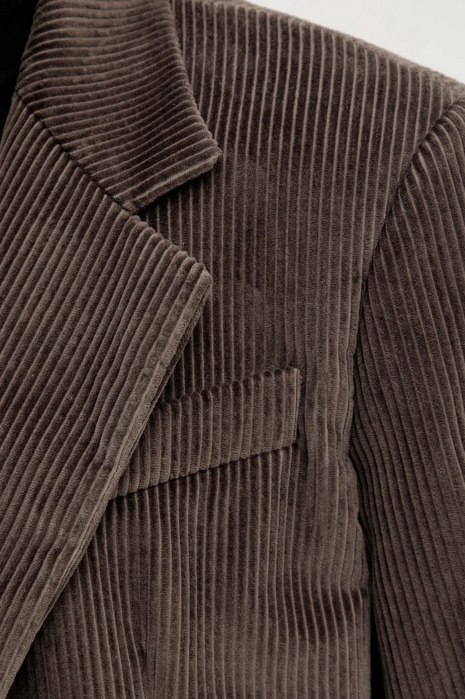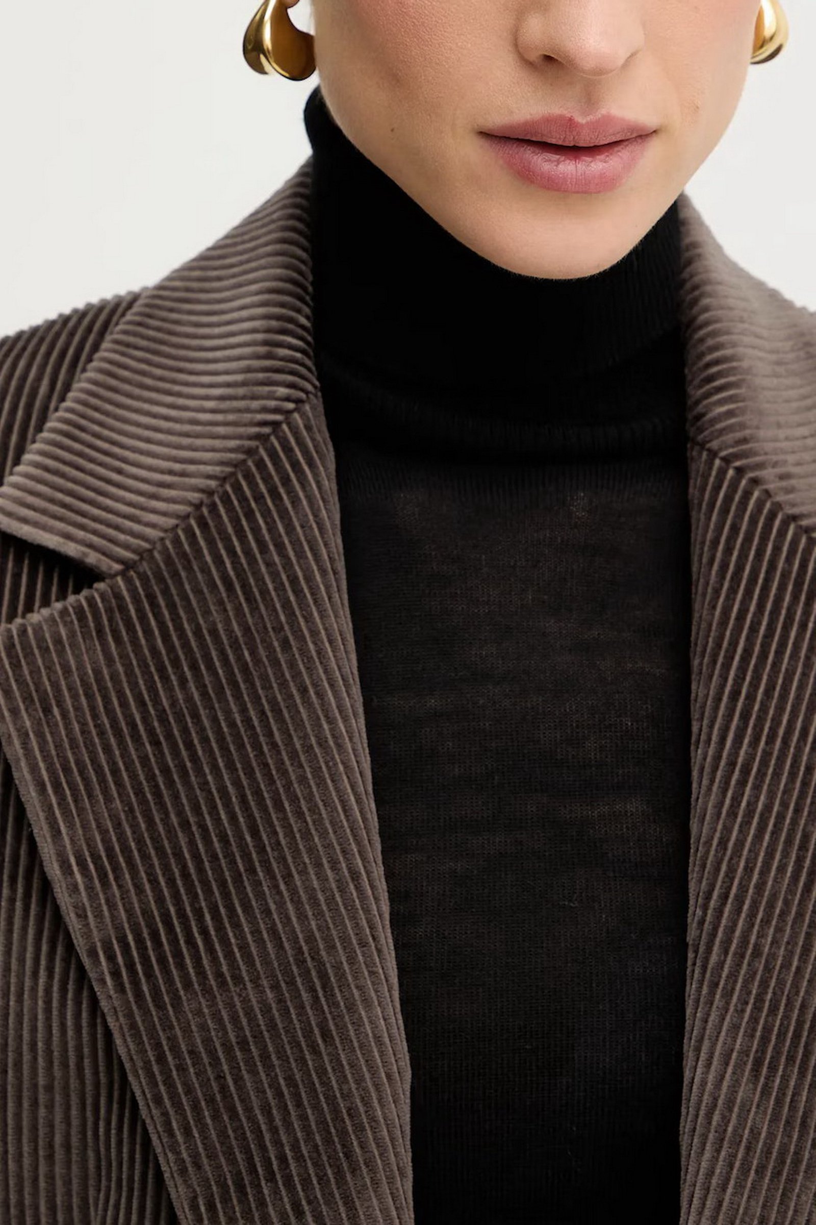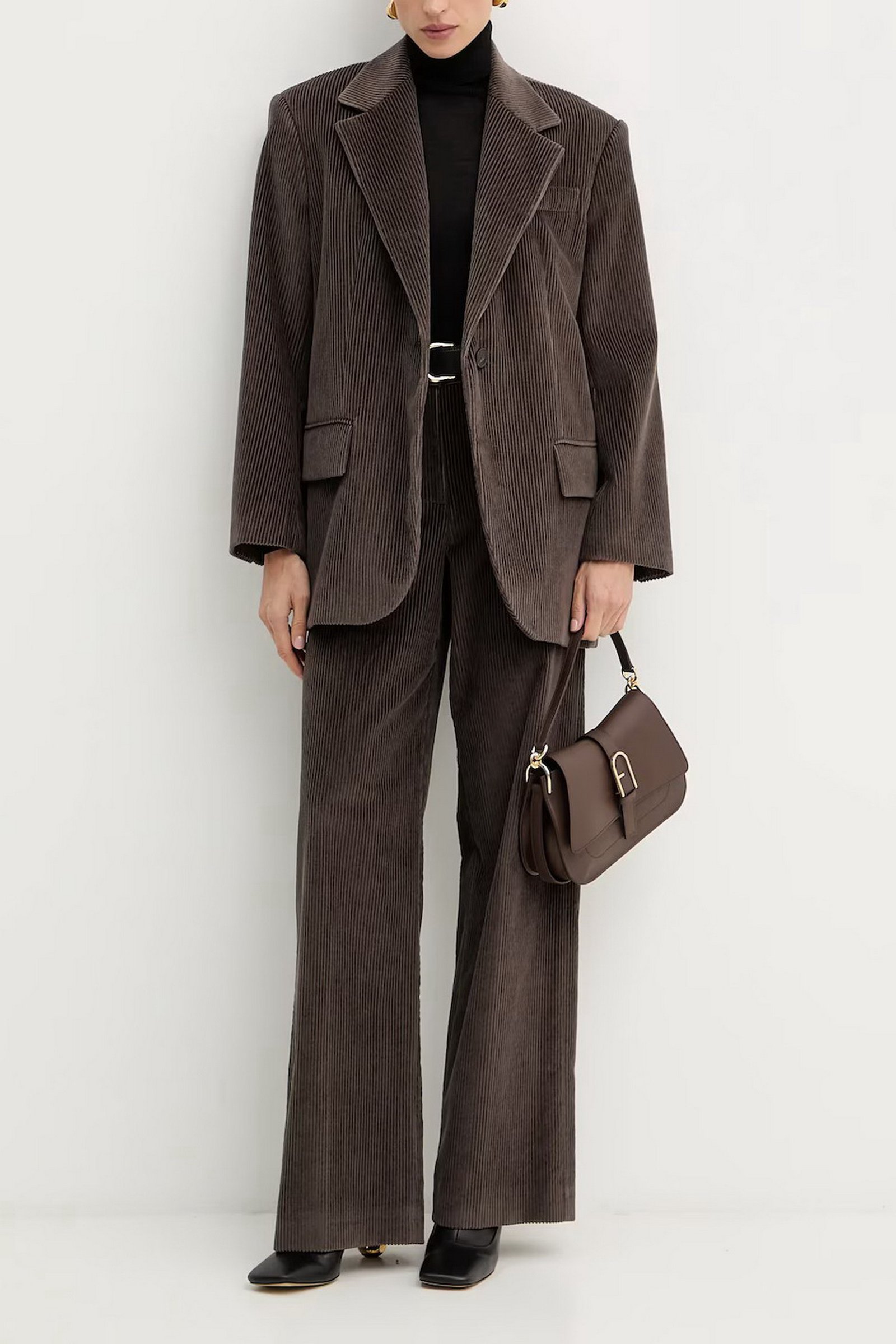 Blazer monopetto d’ispirazione maschile, dal caratteristico volume oversize.