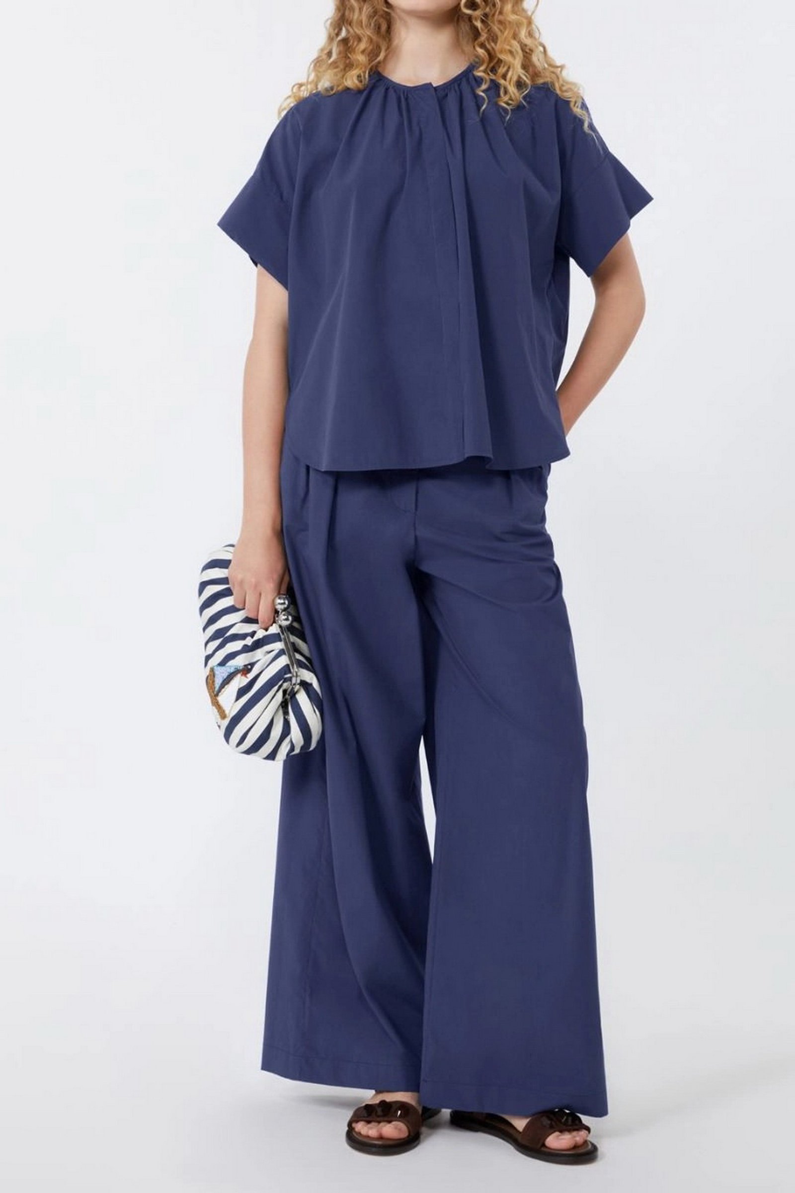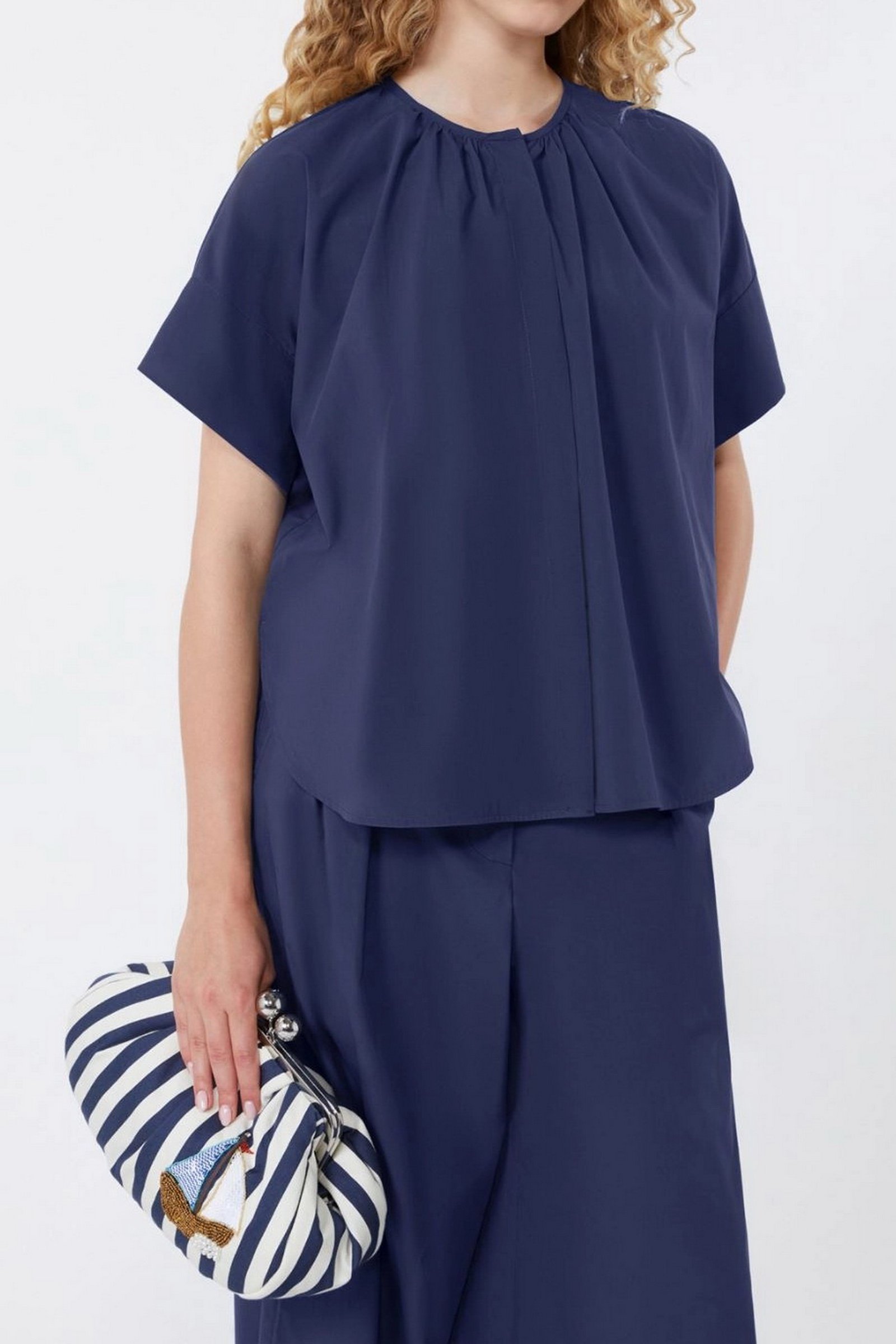 MAX MARA WEEKEND Camicia girocollo in popeline di cotone – Blu