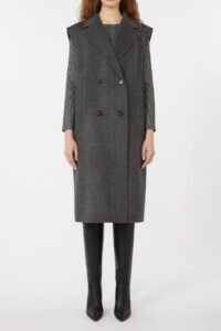 Cappotto midi doppiopetto 2-in-1 composto da gilet lungo e bolero rimovibile a maniche lunghe, da indossare singolarmente o abbinati.