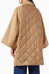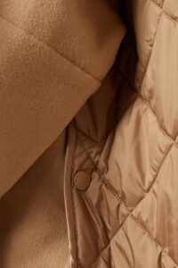 Cappotto monopetto con retro in tela antigoccia, imbottito in imbottitura in Luxepad Ultra Fine Insulating Technology Camel-Silk Blend Edition e trapuntato a rombi.