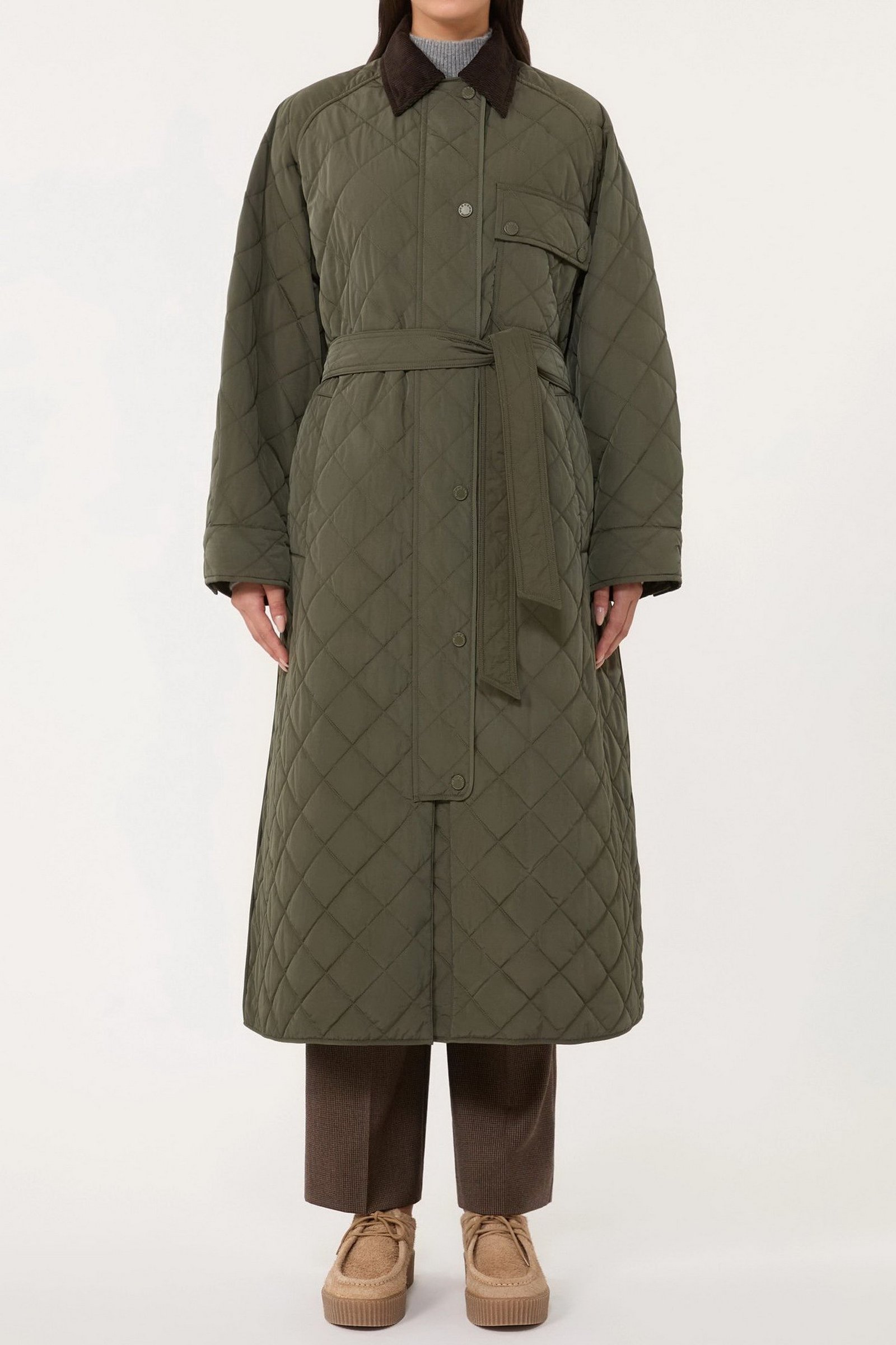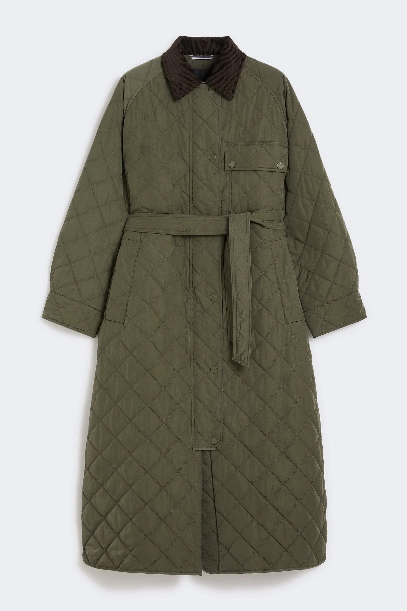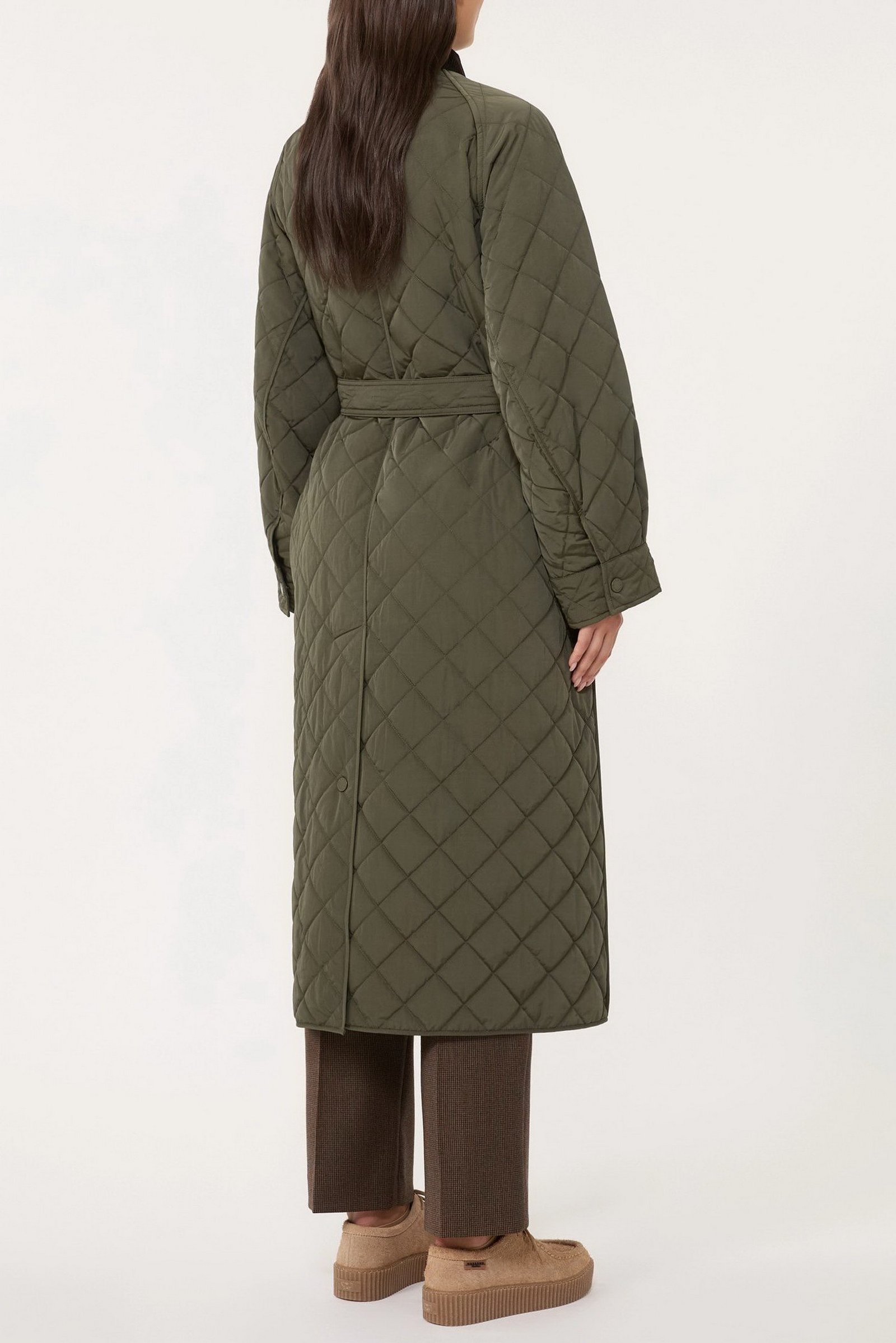 Cappotto lungo imbottito in Luxepad Ultra Fine Insulating Technology Camel-Silk Blend Edition con cintura abbinata in vita.