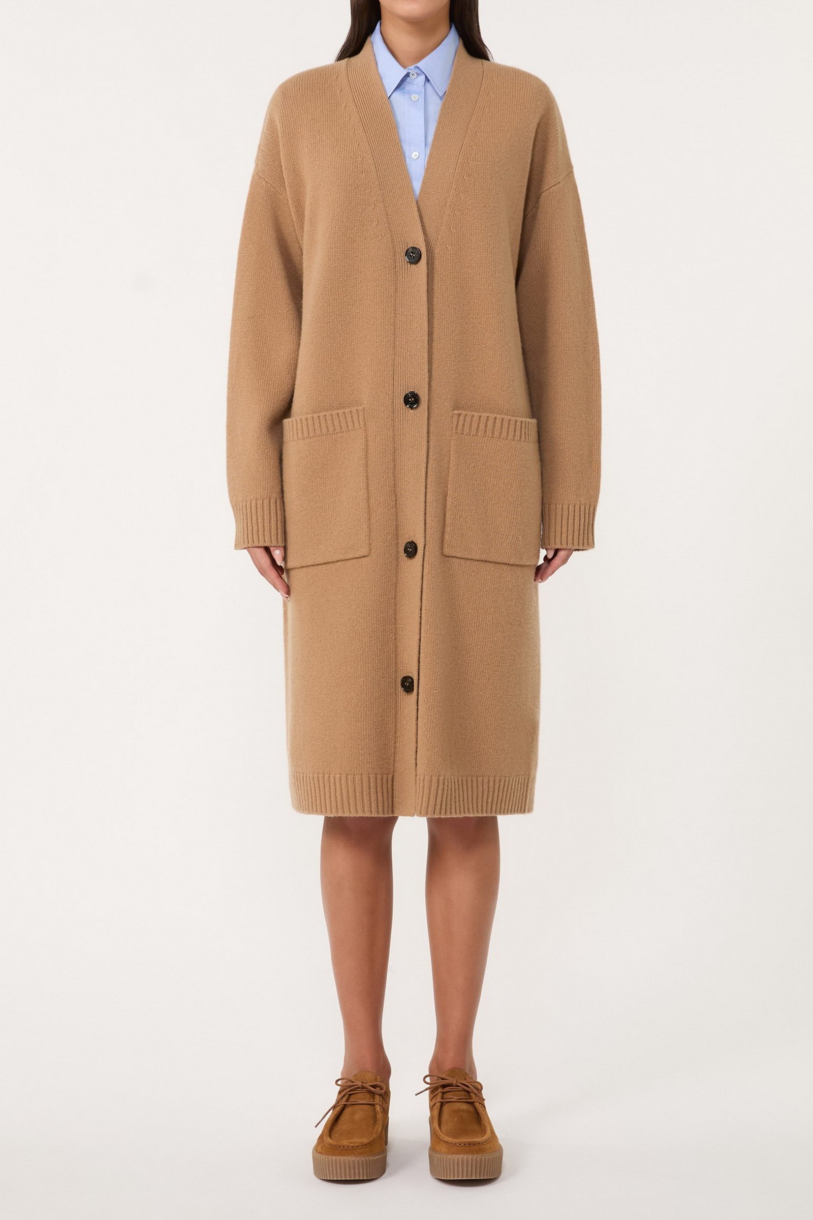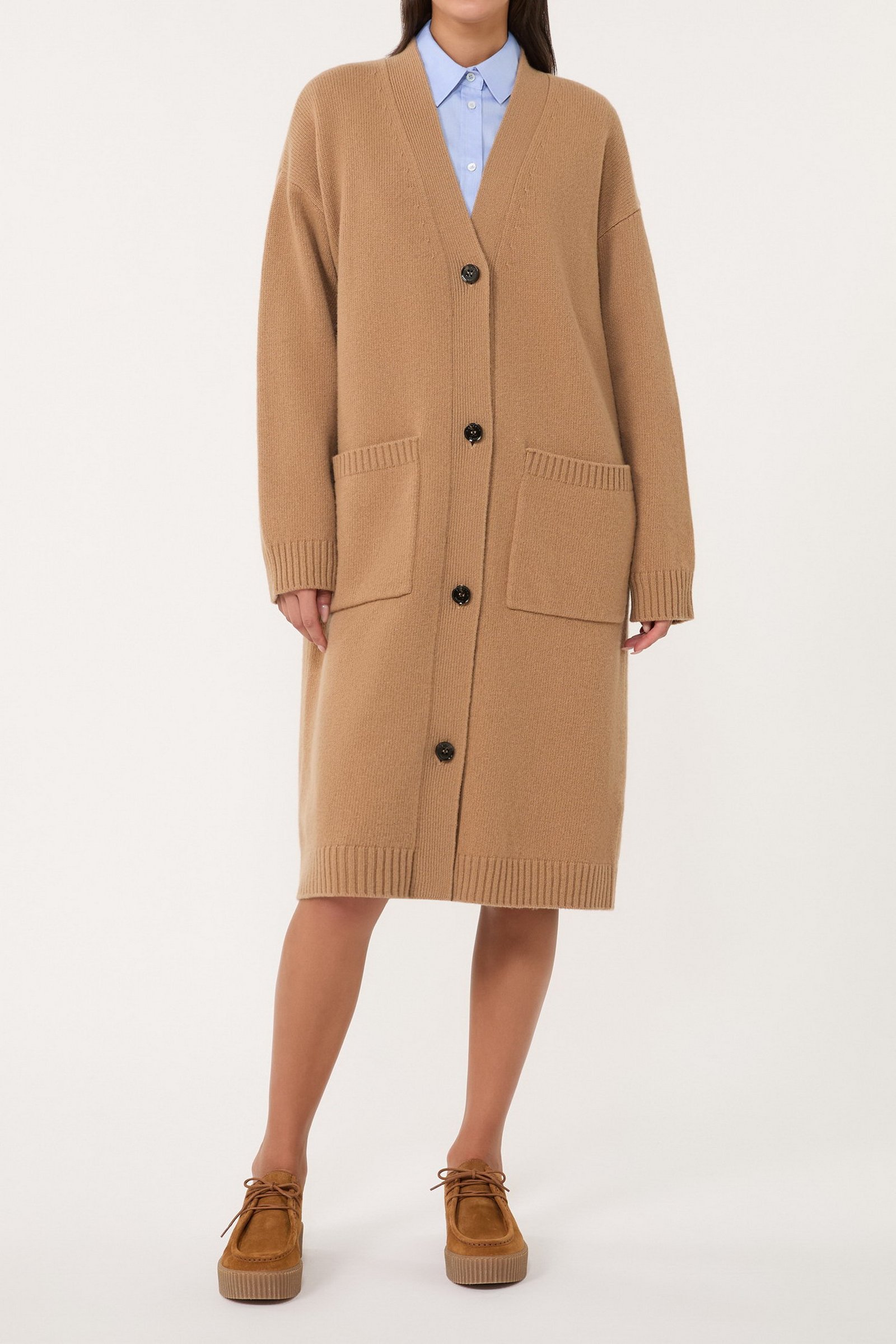 Cardigan lungo dalla vestibilità ampia e confortevole.