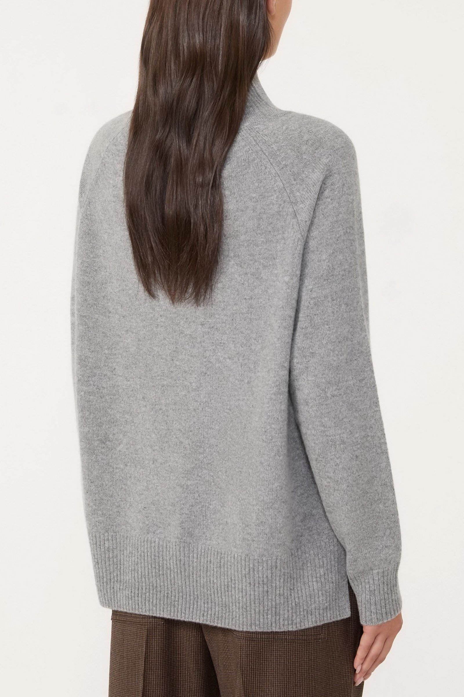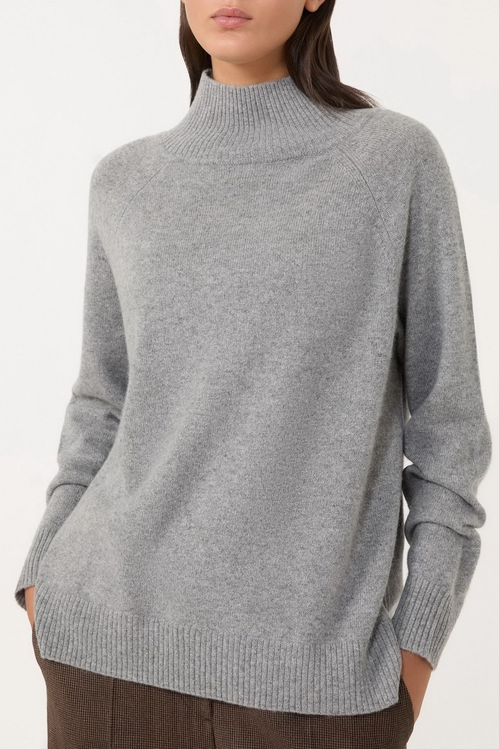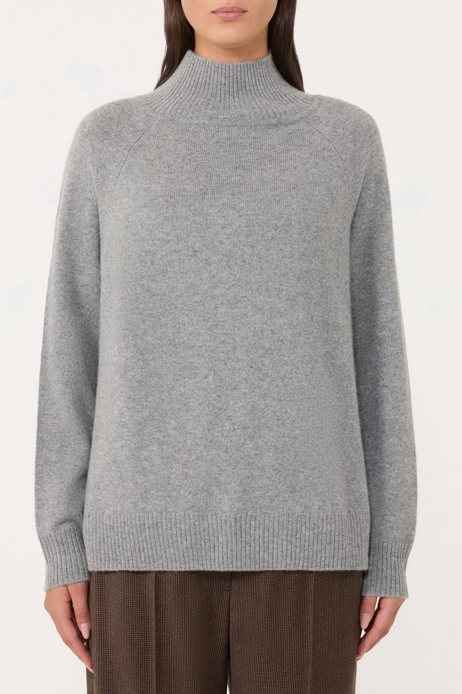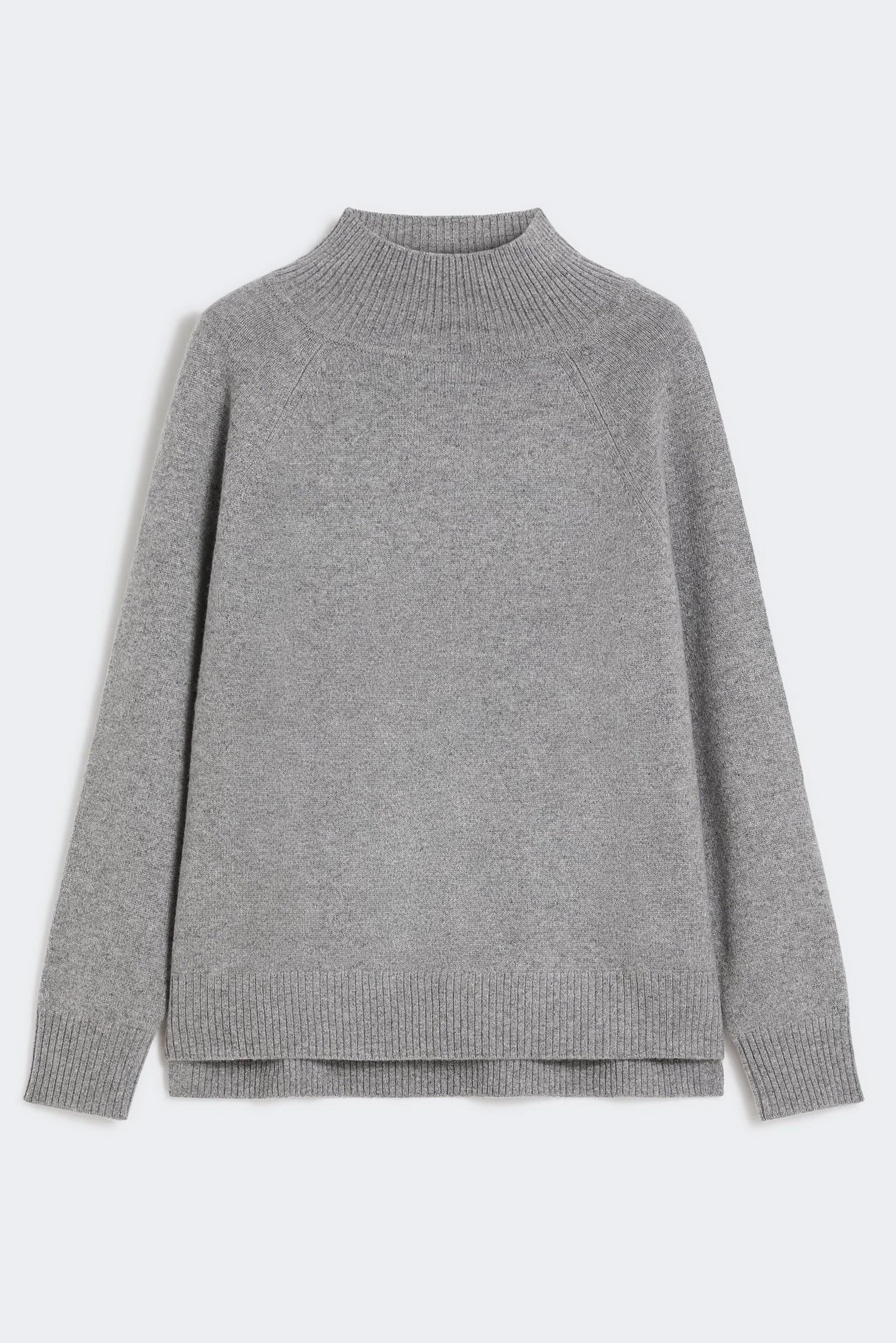 Maglia dolcevita con piccoli spacchi laterali e fondo leggermente più lungo sul retro.