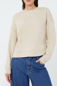 Felpa crop dalla morbida texture garzata con logo ricamato sul fondo.