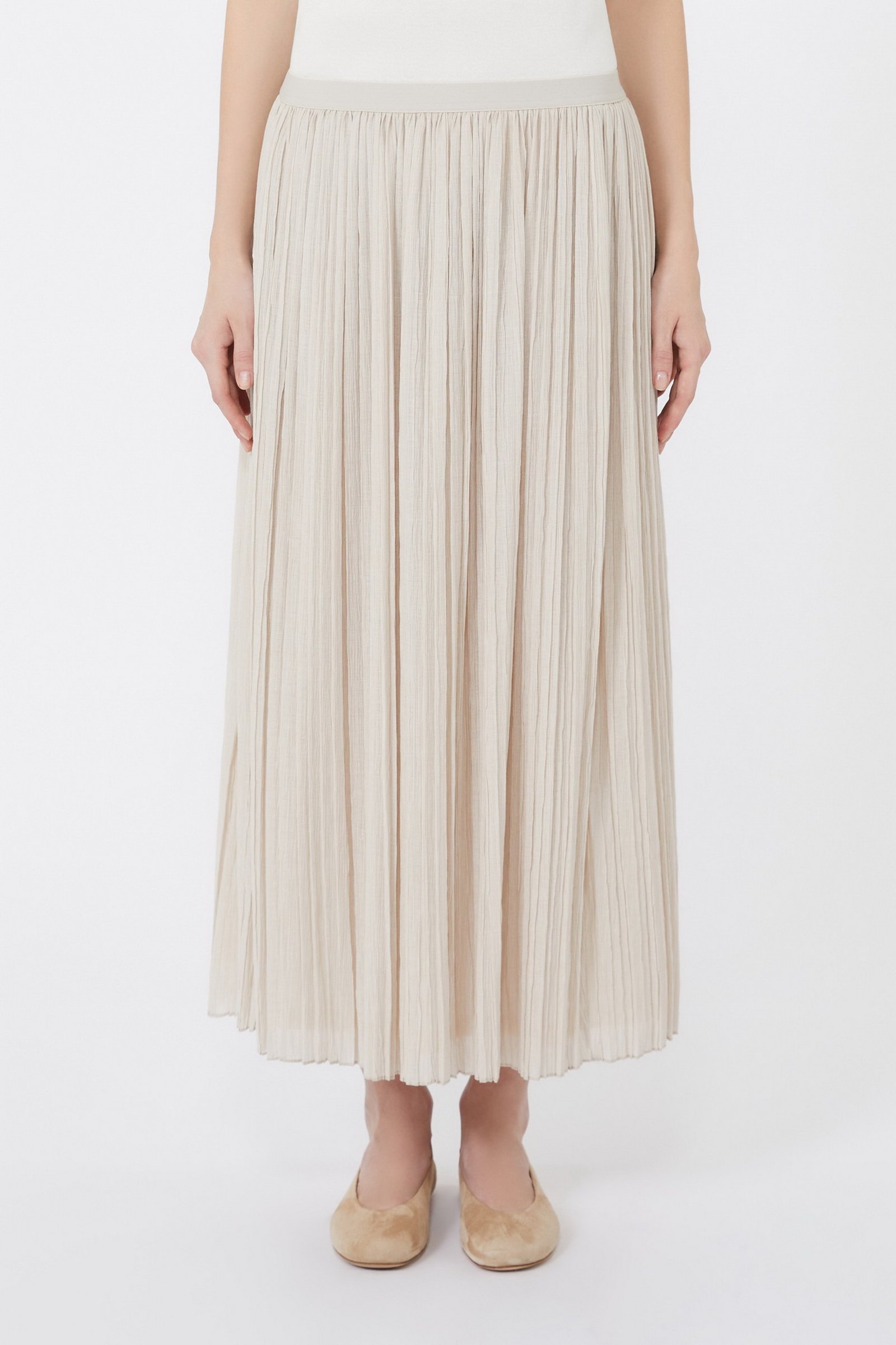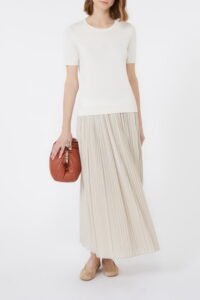 Gonna caratterizzata da un motivo a pieghe plissé che dona movimento.