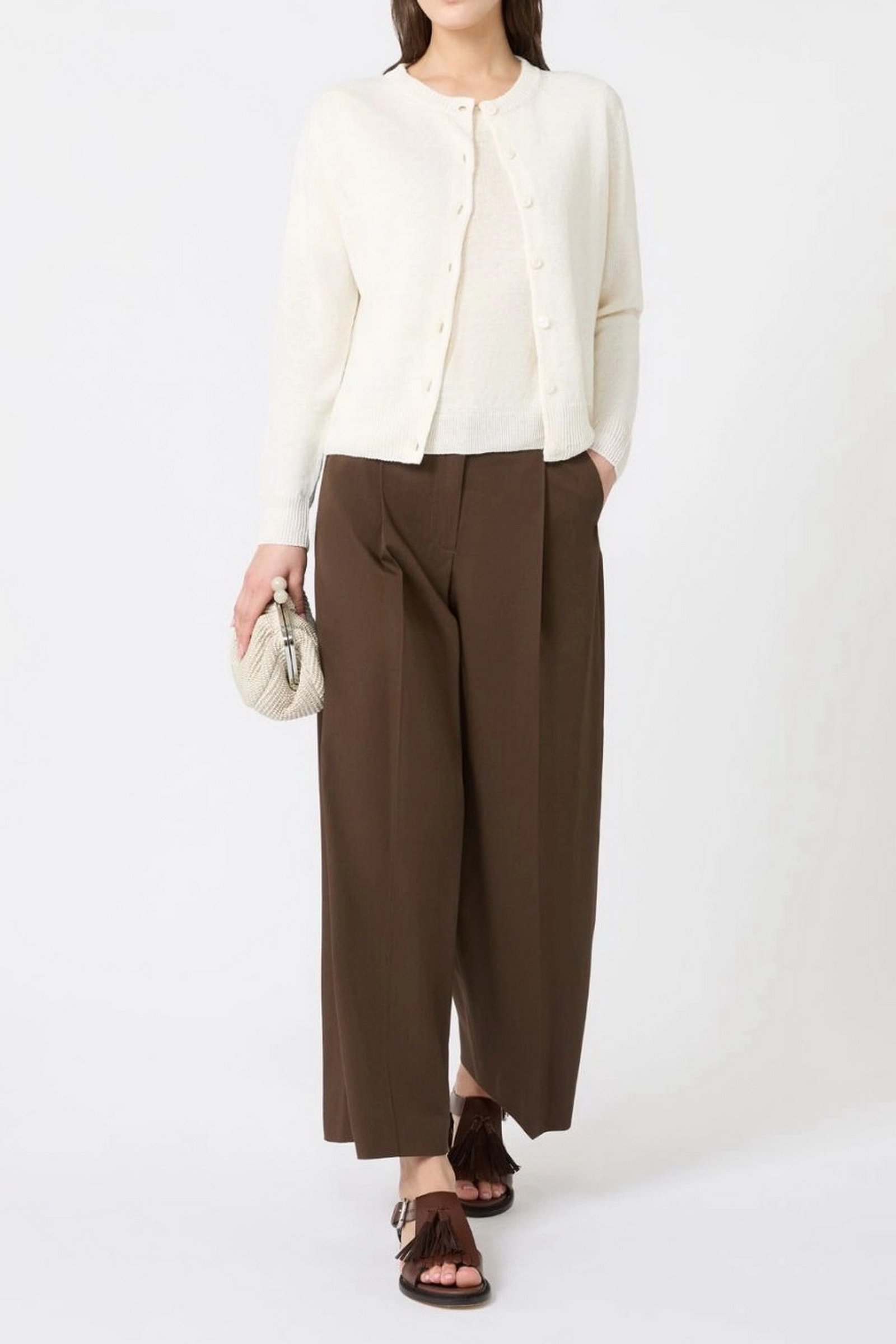 MAX MARA WEEKEND Cardigan classico in filato di lino – Ecru
