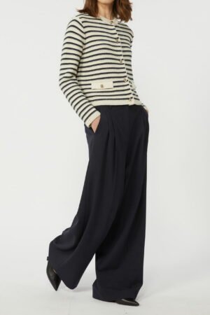 MAX MARA WEEKEND Cardigan crop in cotone – riga Blu su fondo Ecru