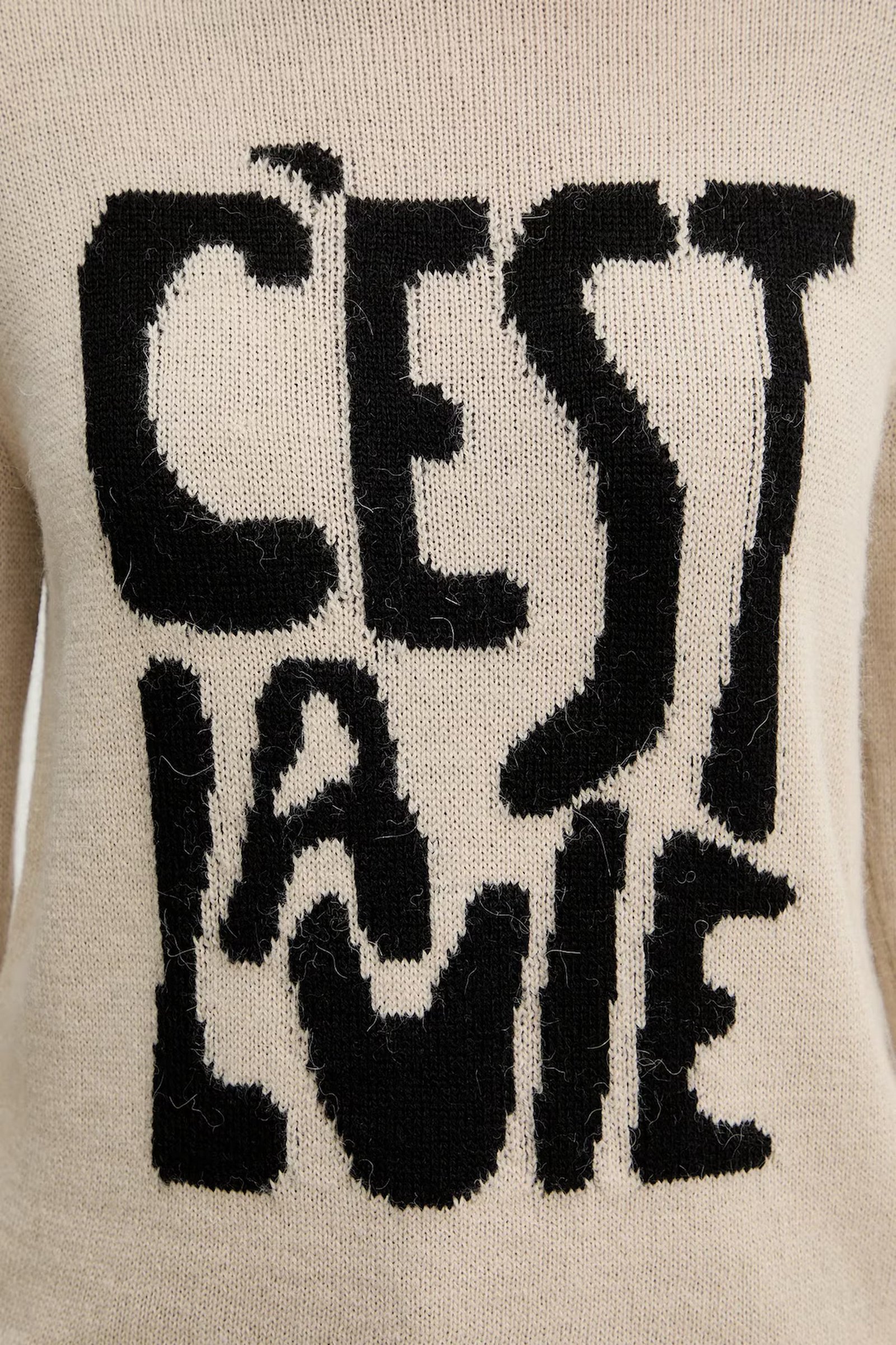 Maglia girocollo, personalizzata con motivo di collezione intarsiato al centro sul davanti.