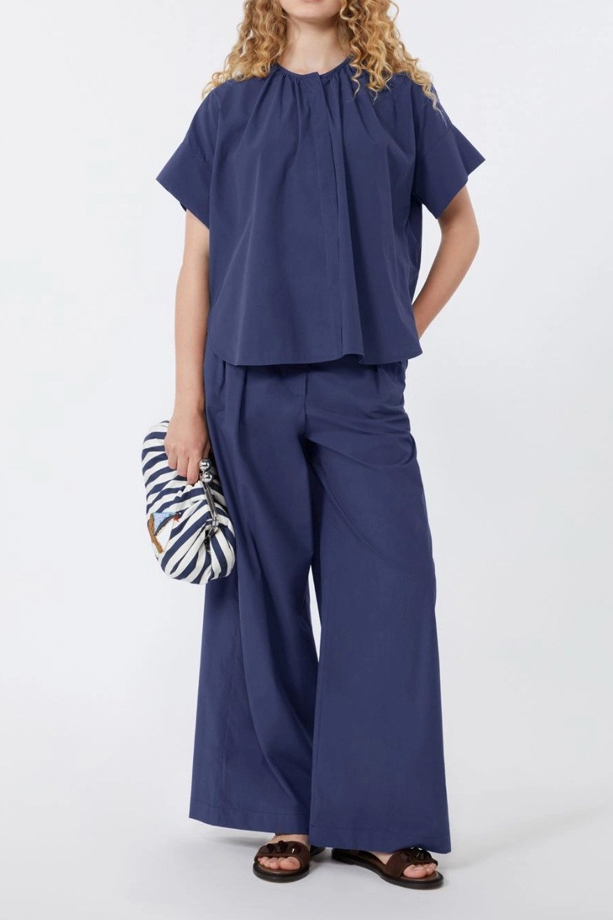 MAX MARA WEEKEND Pantalone ampio in popeline di cotone – Blu