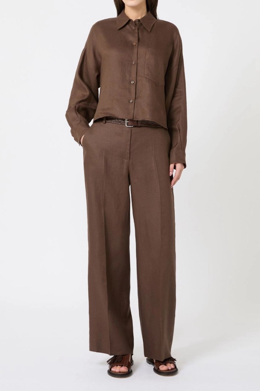 MAX MARA WEEKEND Pantalone in canvas di lino – Cioccolato
