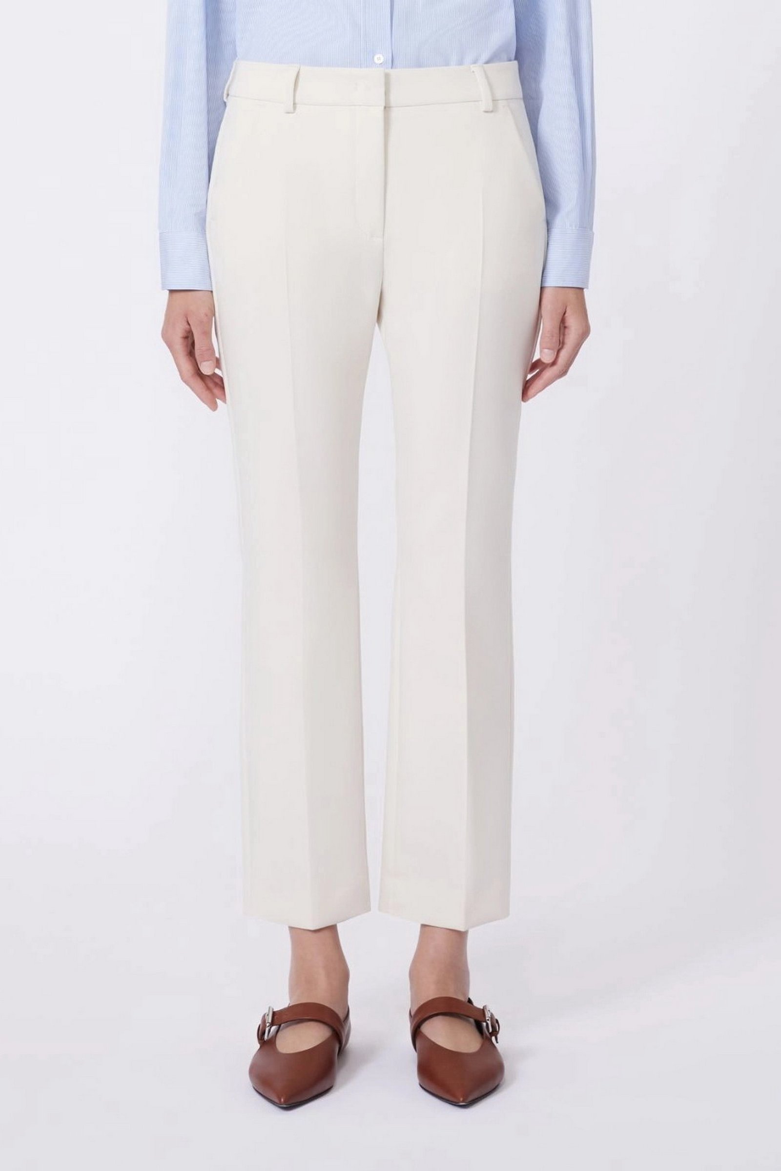 Pantalone d’ispirazione classica con taglio cropped alla caviglia.