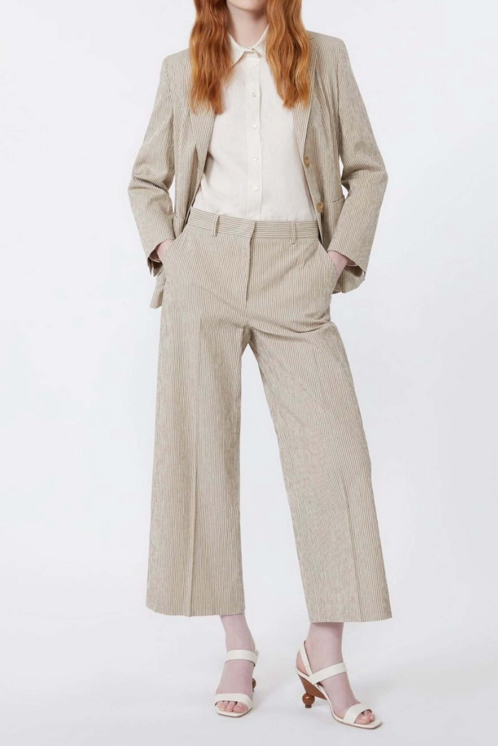 ‘S MAX MARA Pantalone in stuoia di lino – Bianco