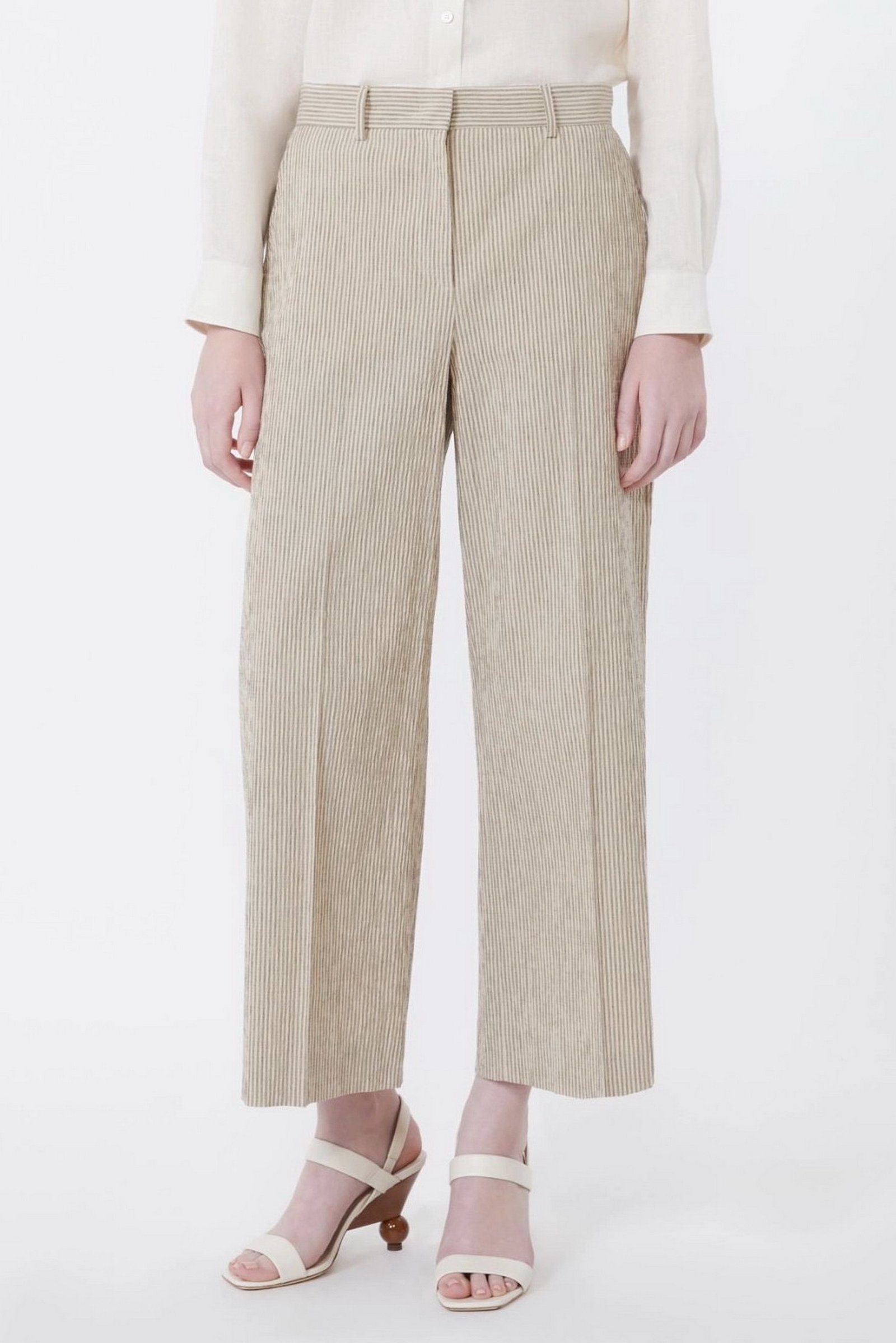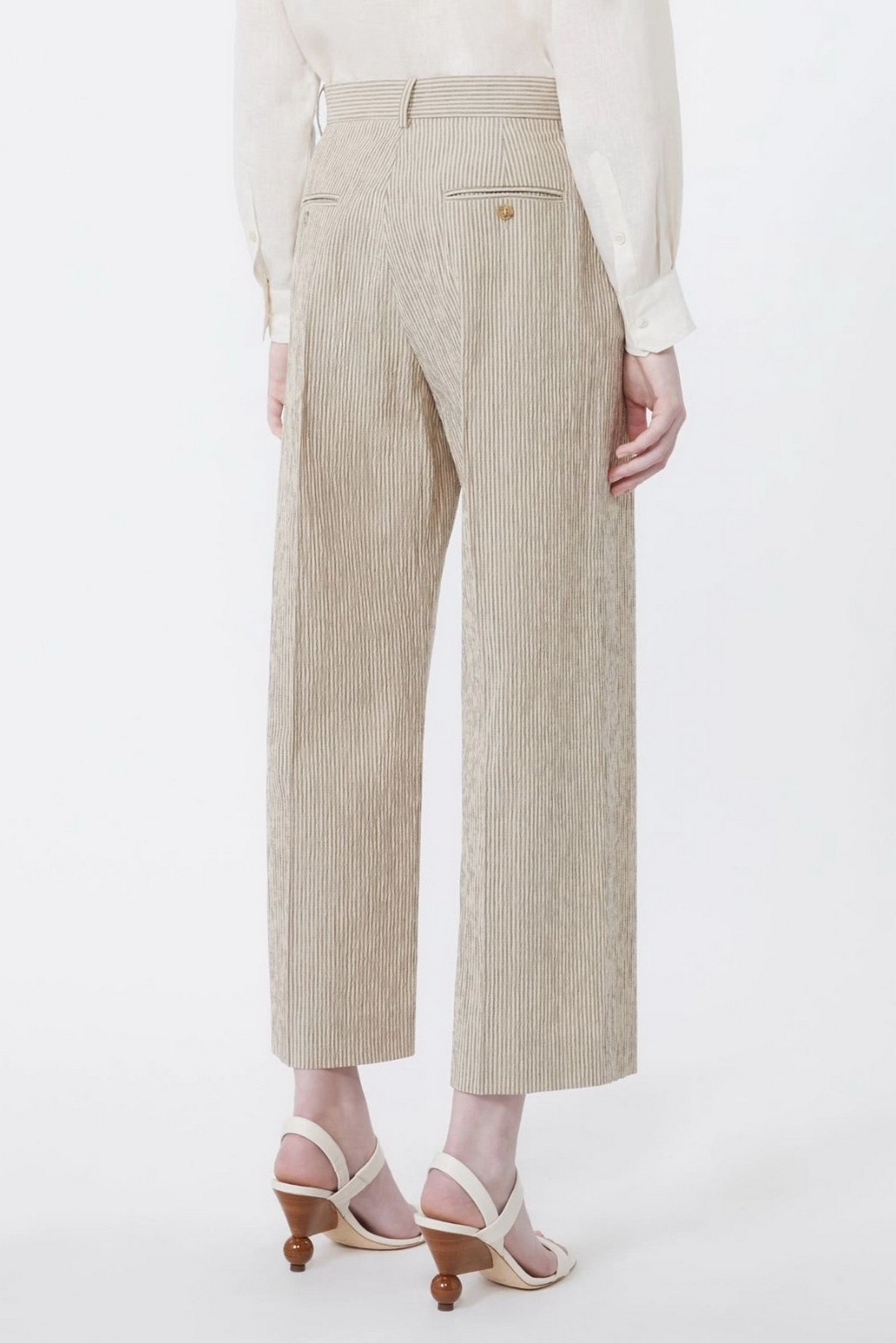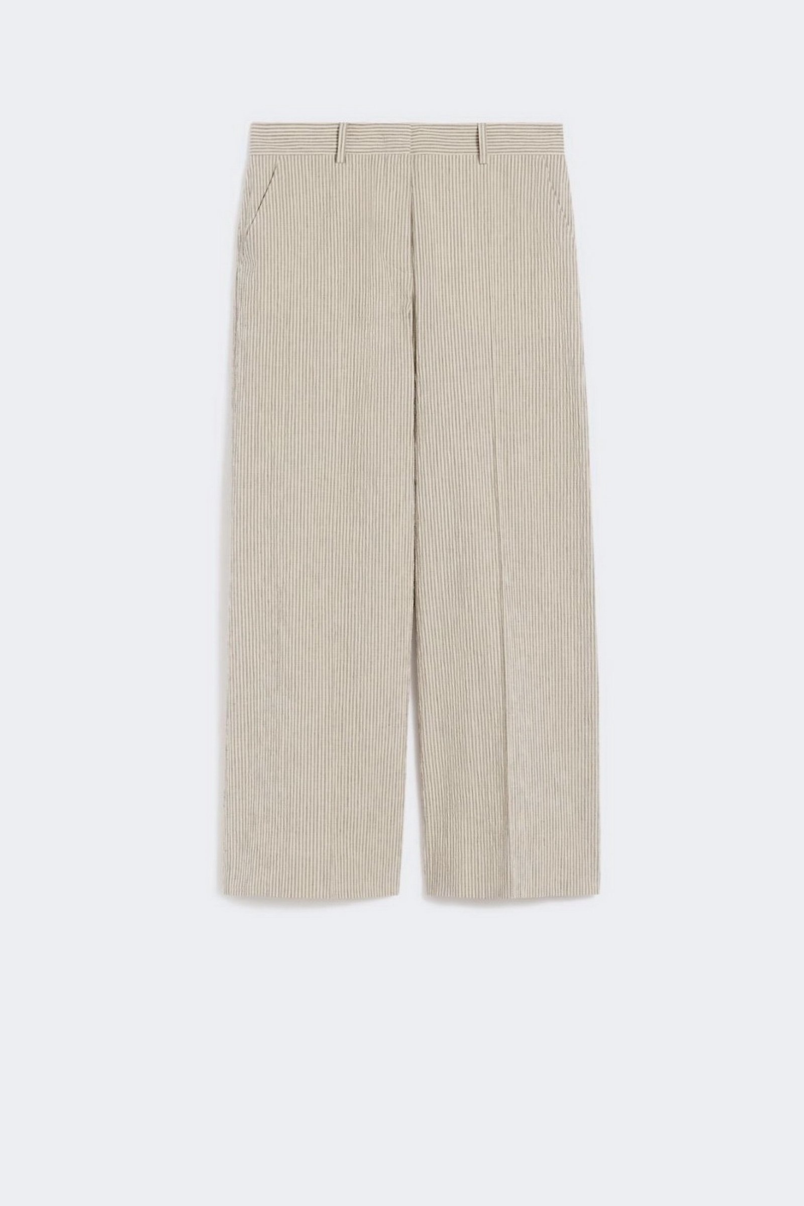 - Pantalone in seersucker di cotone e lino a righe