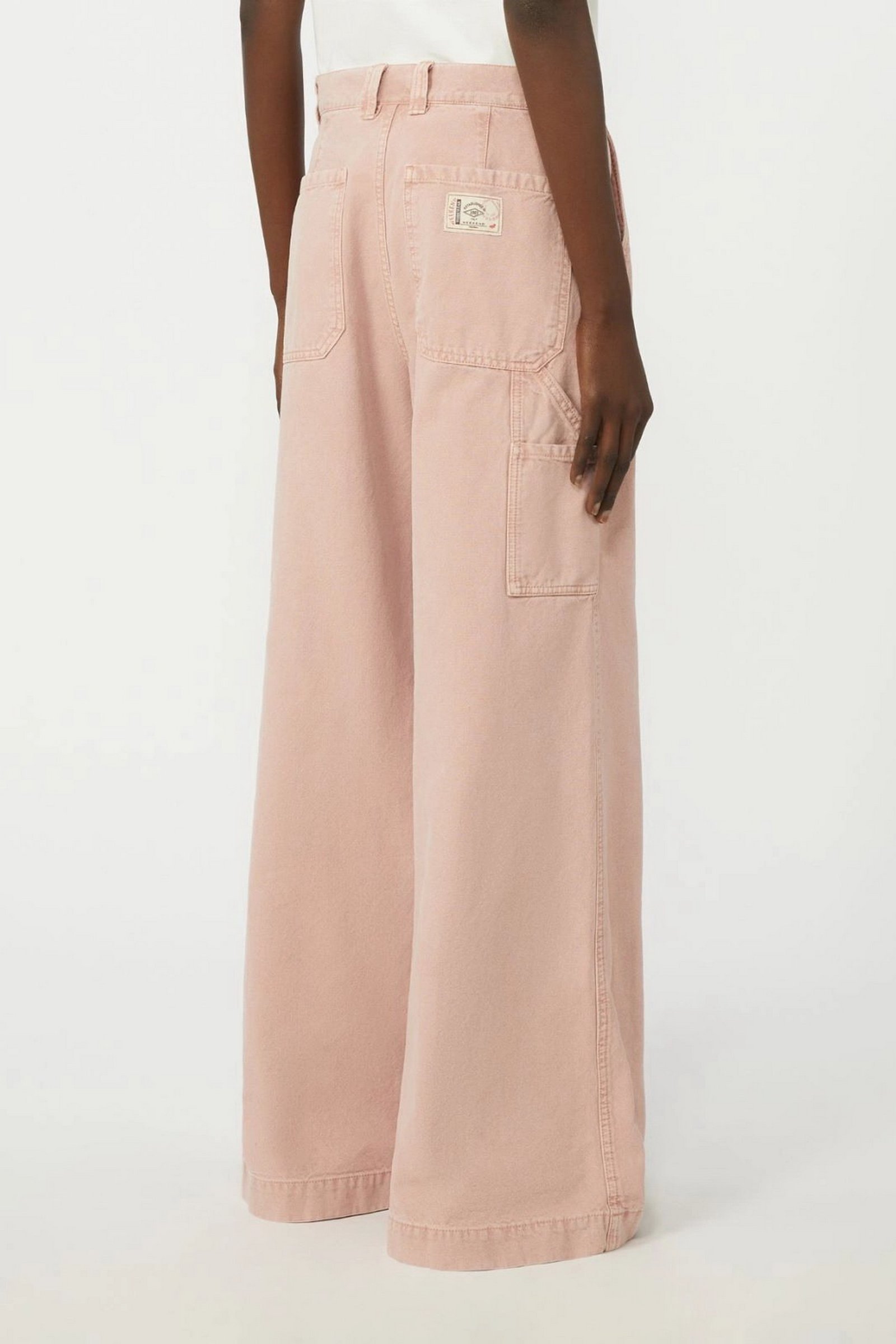 Pantalone wide leg, caratterizzato da dettagli workwear e tasche carpenter sulla gamba.