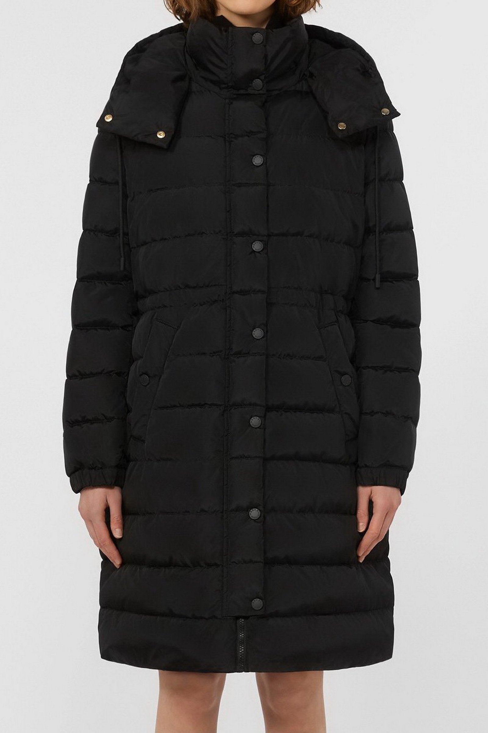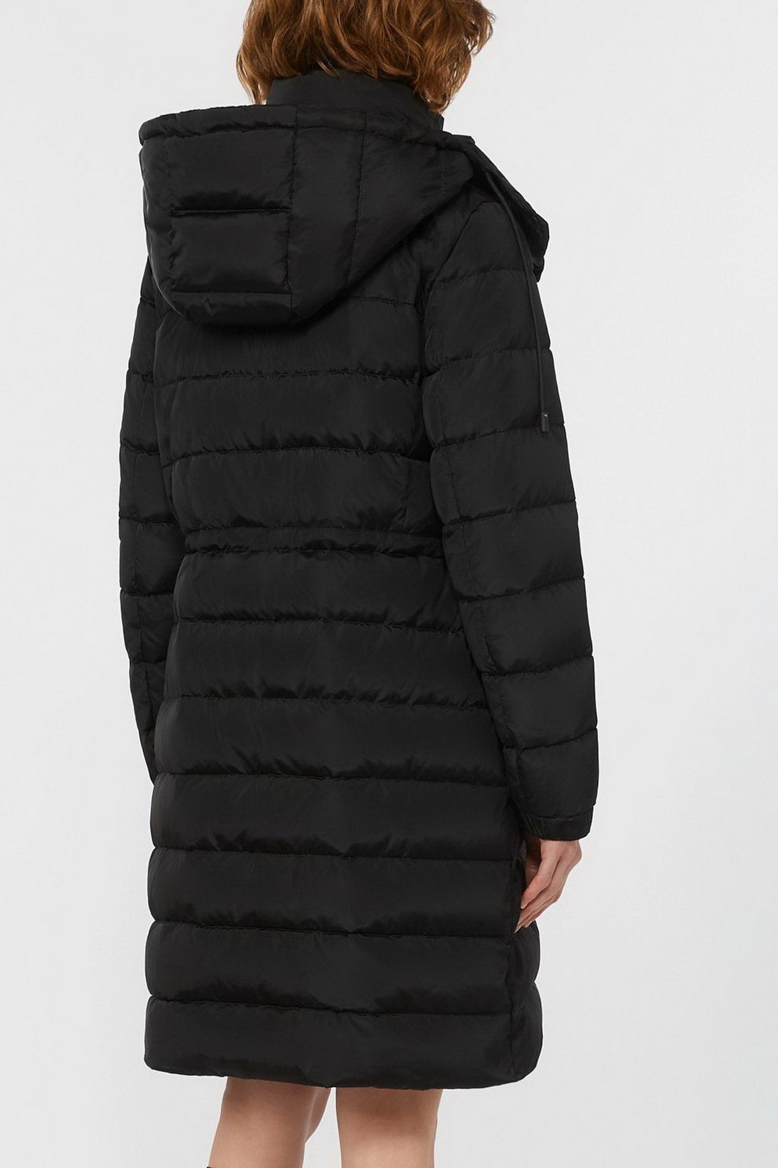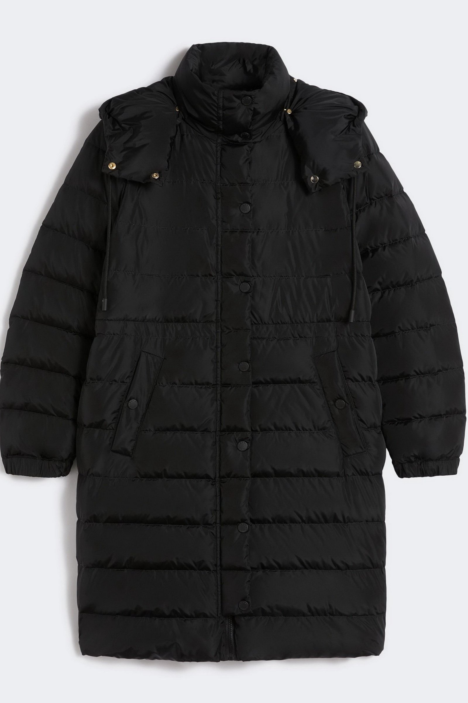 Piumino midi monopetto, con motivo trapuntato a righe orizzontali.
