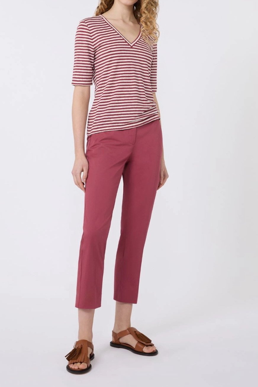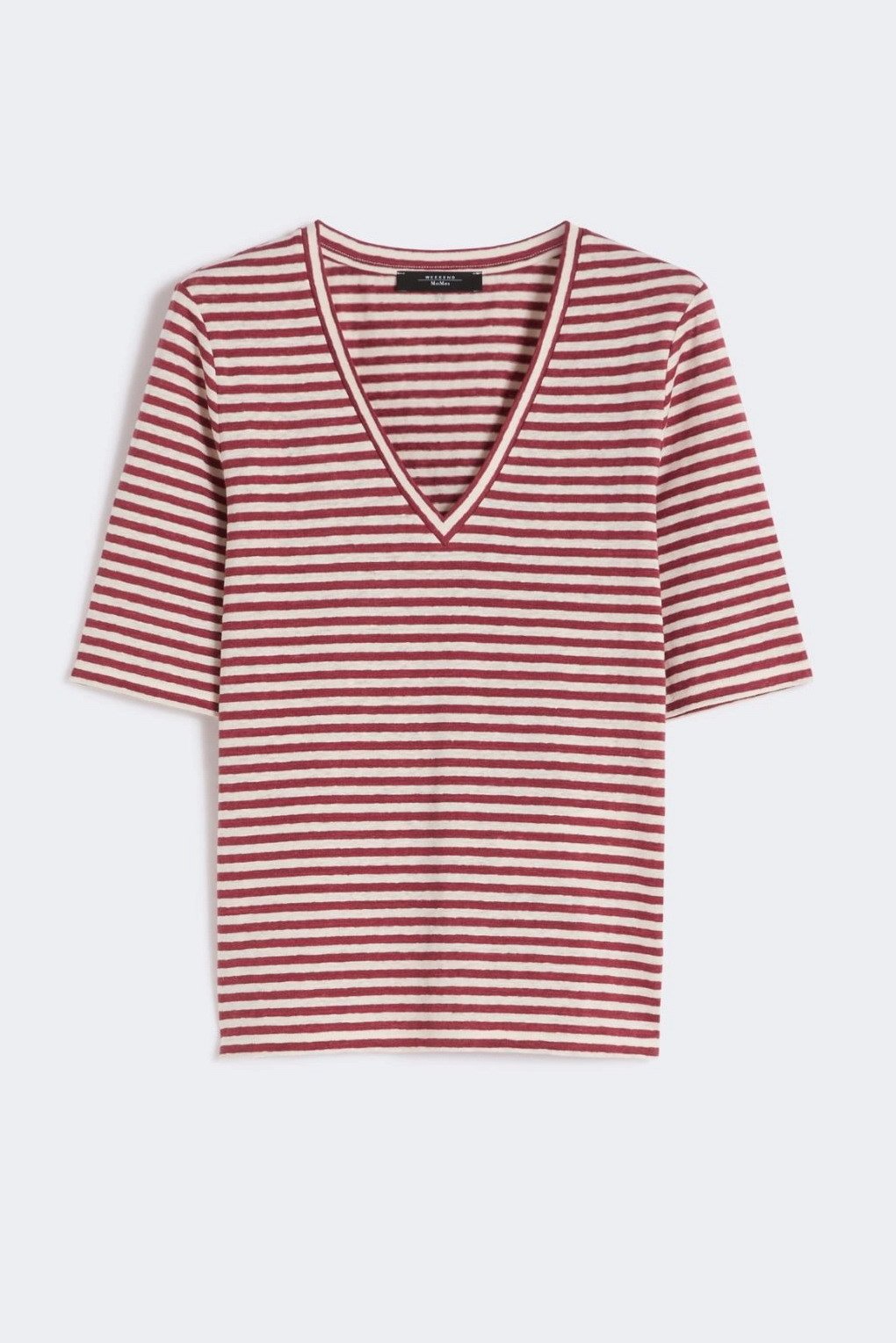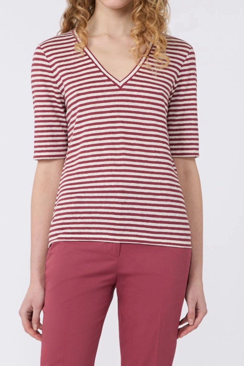 MAX MARA WEEKEND T-shirt a V in jersey di lino stretch – Ciliegia