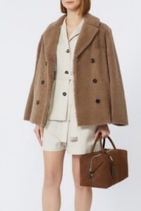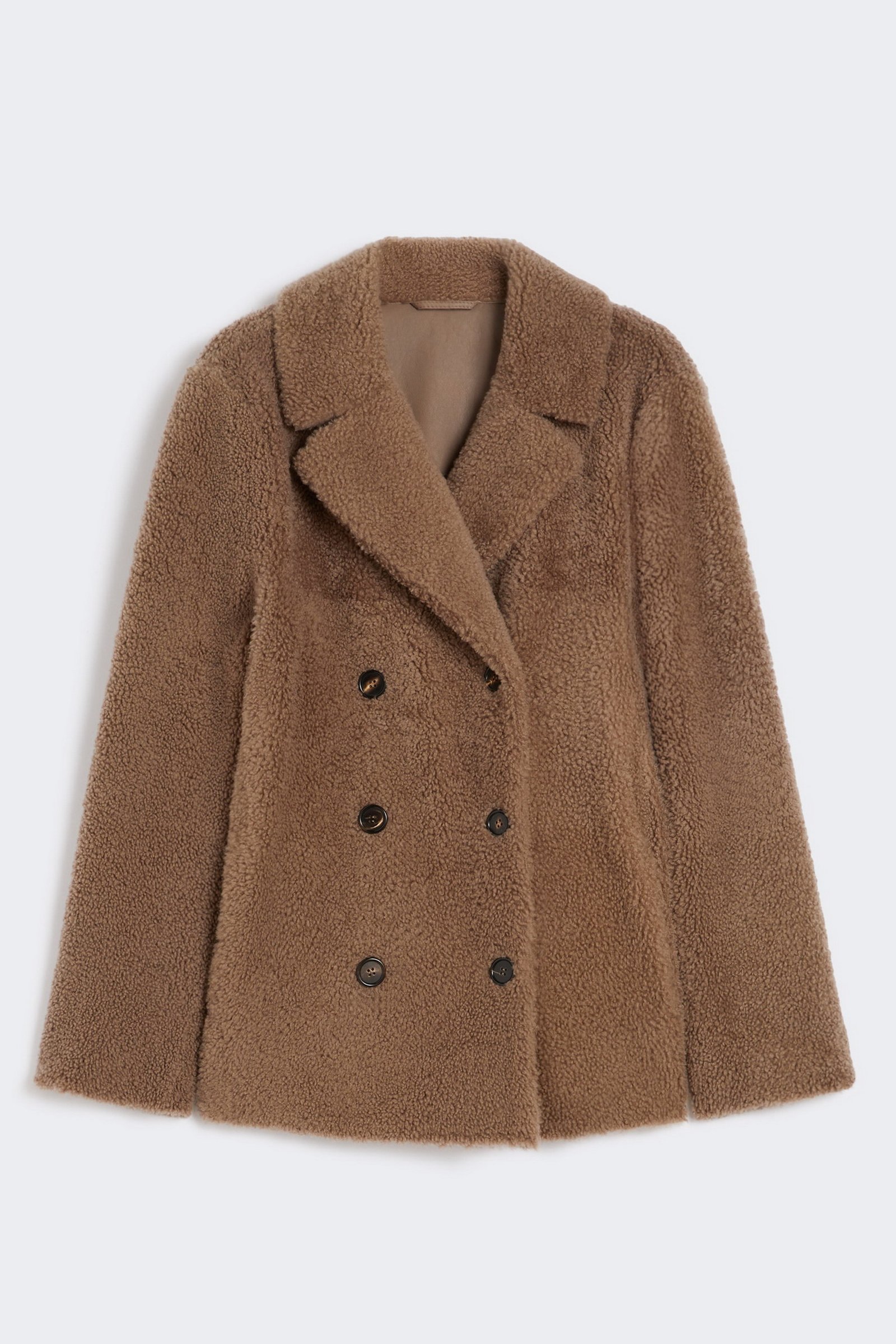 Giacca caban doppiopetto dalla vestibilità leggermente svasata al fondo.