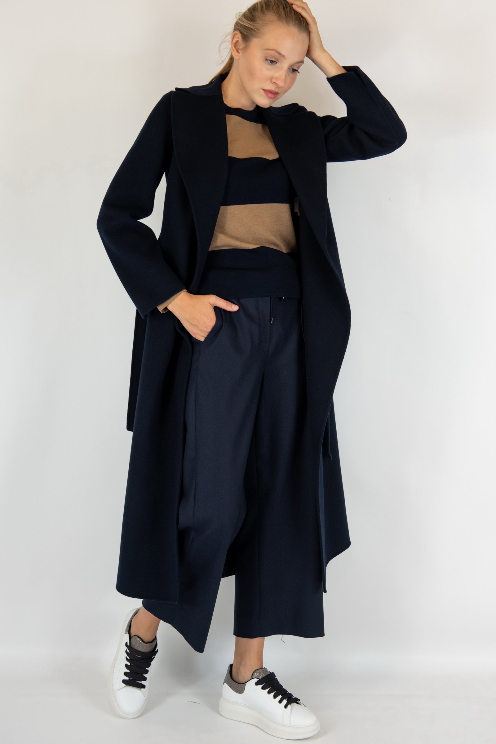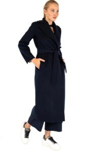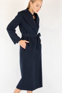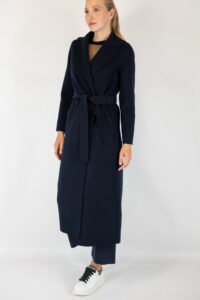 Caratterizzato da una silhouette a vestaglia con collo a rever ampio. variante 012 colore Blu marino