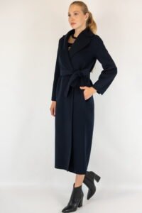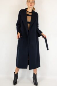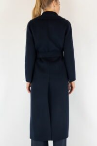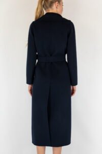 Cappotto lungo a vestaglia con ampio spacco centrale sul retro.