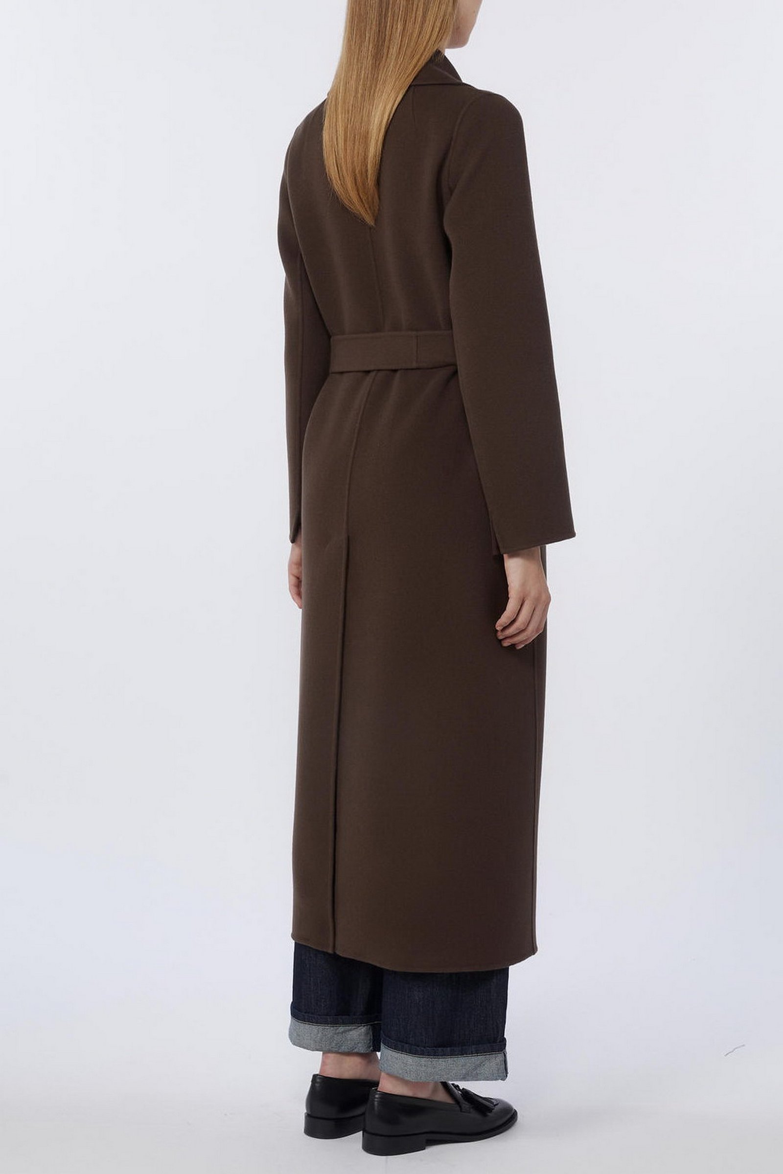 Cappotto lungo a vestaglia con ampio spacco centrale sul retro.