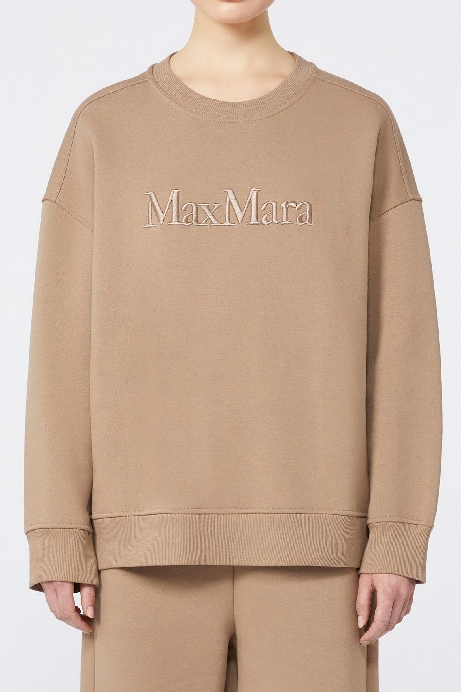 Felpa dalla vestibilità morbida, personalizzata con logo Max Mara ricamato al centro sul davanti.