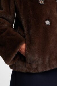 Silhouette avvolgente con taglio leggermente cropped. Variante 001 colore Marrone