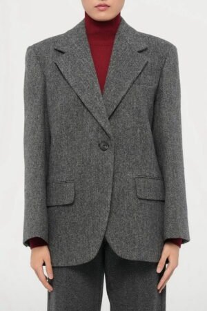Giacca doppiopetto caratterizzata da una silhouette avvolgente con taglio leggermente cropped.