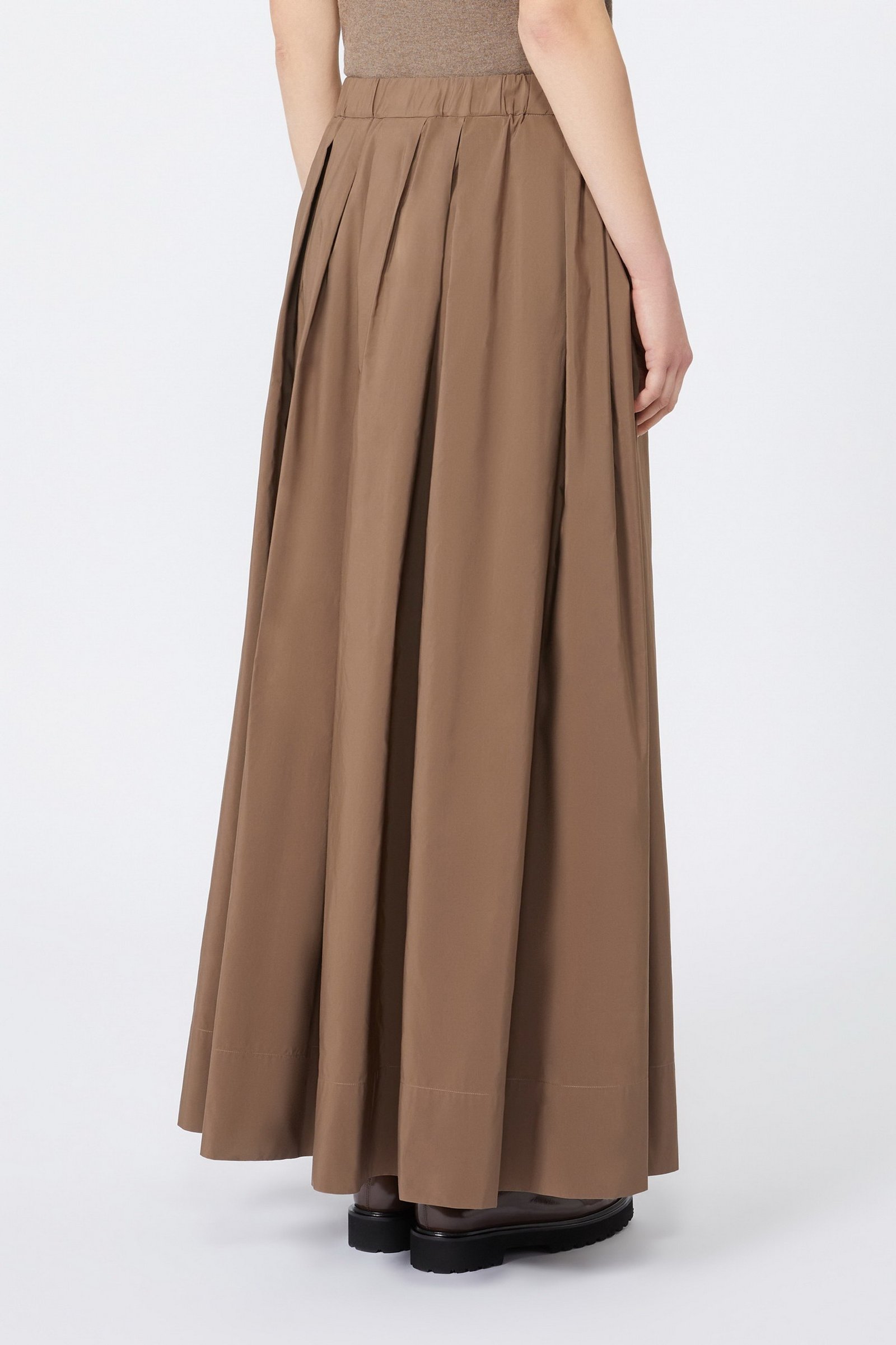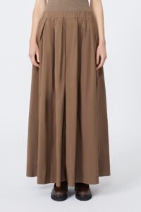 Gonna lunga con motivo a pieghe che dona volume e movimento al capo.