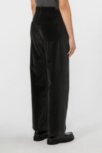 Pantalone 5 tasche caratterizzato da una silhouette con gamba a banana.